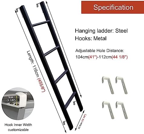 Introducing our versatile bunk ladder, designed for safety and convenience, making it an essential addition to your space. Whether it's for a dormitory, kids' bedroom, or RV bunk bed, this ladder provides a secure way to reach the top bunk with confidence. **Product Features:** - **Sturdy Construction**: Made from high-quality steel, our ladder boasts a robust load capacity of 200kg (440lbs), ensuring it can support users of all sizes. - **Adjustable Hooks**: The ladder includes four hooks that can be easily adjusted to fit your specific needs, allowing for a customizable setup. - **Easy Installation**: With its simple assembly and disassembly process, you can set up or take down the ladder in no time, making it perfect for temporary arrangements or limited spaces. - **Compact Design**: Measuring 33.5cm (13 1/4") in width and available in various heights (116cm to 150cm), this portable ladder fits seamlessly into any environment without compromising on stability. **Usage Scenarios**: This ladder is ideal for parents looking to create a safe sleeping environment for their children, students needing easy access to lofted beds, or anyone utilizing bunk beds in compact living situations like RVs. Its sleek black finish complements various decors, ensuring it not only functions well but also looks great. **Quality Assurance**: We are dedicated to providing excellent service. If you have any questions or concerns about your order, please don't hesitate to reach out. Your satisfaction is our priority, and we are here to assist you promptly. Elevate your living space with our durable, user-friendly bunk ladder—your go-to solution for safe and easy access to upper sleeping areas.