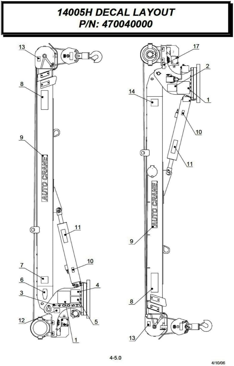 Auto Crane 470040000, Decal Kit for 14005H Series Cranes