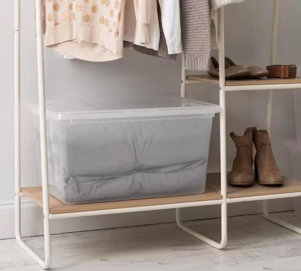 This spacious storage box is ideal for organizing board games, blankets, and various large items. The snap-tight lid ensures secure storage while the ultra-clear body allows for easy visibility of the contents. Additionally, these boxes are stackable, providing a convenient way to maximize storage space. The dimensions are 24 inches in length, 16.25 inches in width, and 12.13 inches in height.