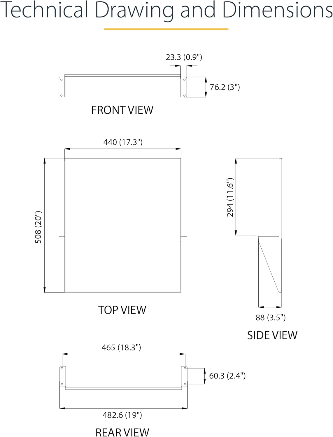 | Size | 3.5" x 19" x 20" |