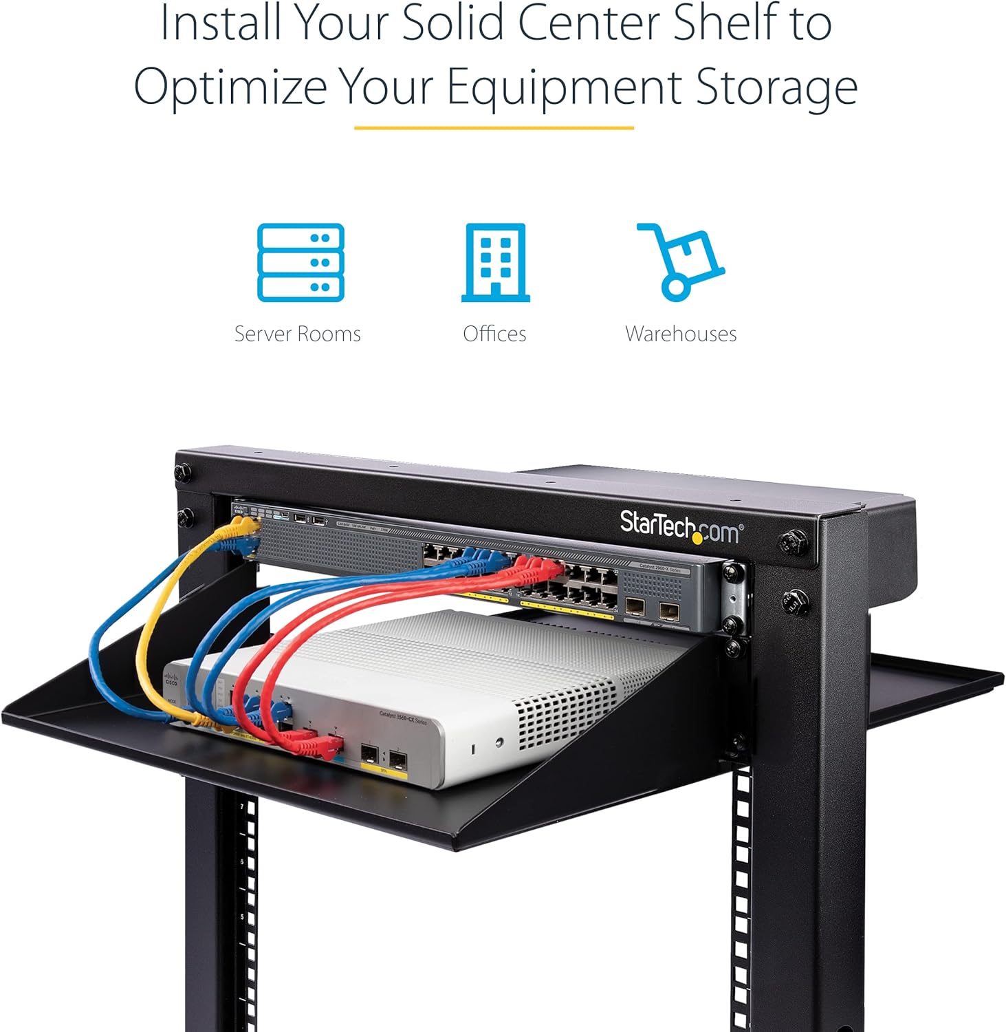 The 2-post server rack shelf allows you to add a high capacity mid-mount fixed shelf to almost any standard 2 post server rack. EIA 310 Compliant Our 2U rack shelf is EIA 310 compliant meaning it can fit most standard 19-inch 2 post racks. The included mounting brackets can be adjusted to accommodate different post depths, making this center mount rack shelf a universal solution for 2 post cantilever rack storage. Solid Steel Construction Constructed using SPCC commercial grade cold-rolled steel, this durable 2 post network rack tray can hold up to 75 lb. (34 kg) of equipment and has an internal depth of 20", making it an ideal solution for storing larger non-rackmount equipment, tools, peripherals or accessories in your rack to keep them readily accessible..