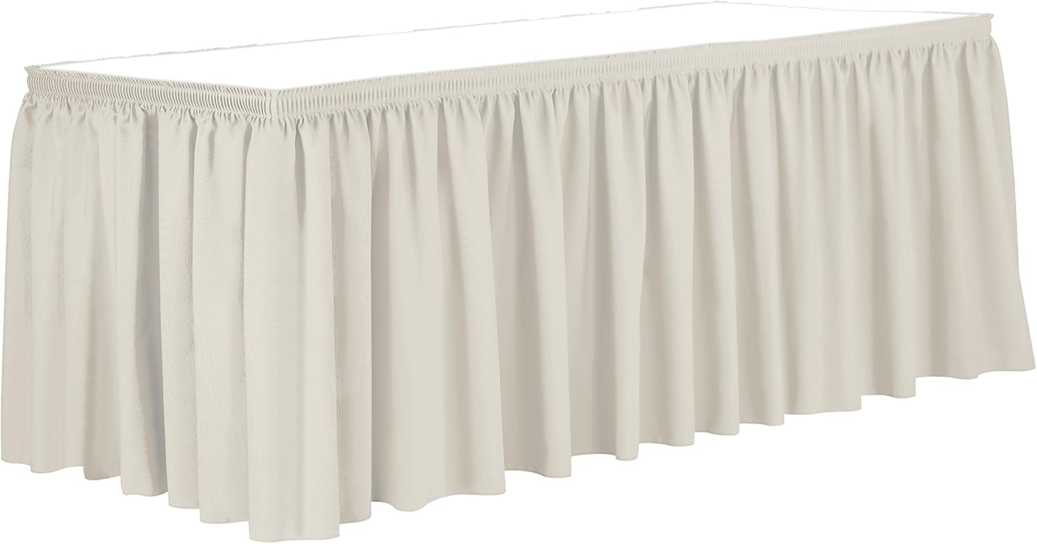 Elevate any gathering with this elegant pleated tablecloth that brings restaurant-quality sophistication to weddings, trade shows, and banquet events. Cut and sewn in Paterson, NJ, this durable desk table skirt features flame resistant polyester fabric that passes NFPA 701-2010 safety standards while delivering the polished look your event deserves. We deliver convenience, you enjoy stress-free setup—the easy-to-use Velcro strips and included clips attach this table curtain skirt securely to rectangle tables of various thicknesses in seconds. This versatile desk cover skirt works beautifully as table cloth skirts for corporate presentations or intimate celebrations. The machine-washable permanent press fabric maintains crisp pleats wash after wash, saving you time and money on cleaning while ensuring your skirt for table looks impeccable every time. From busy event planners to caterers, this reliable table skirt cloth provides the sophisticated table covering solution that elevates every occasion with effortless elegance.