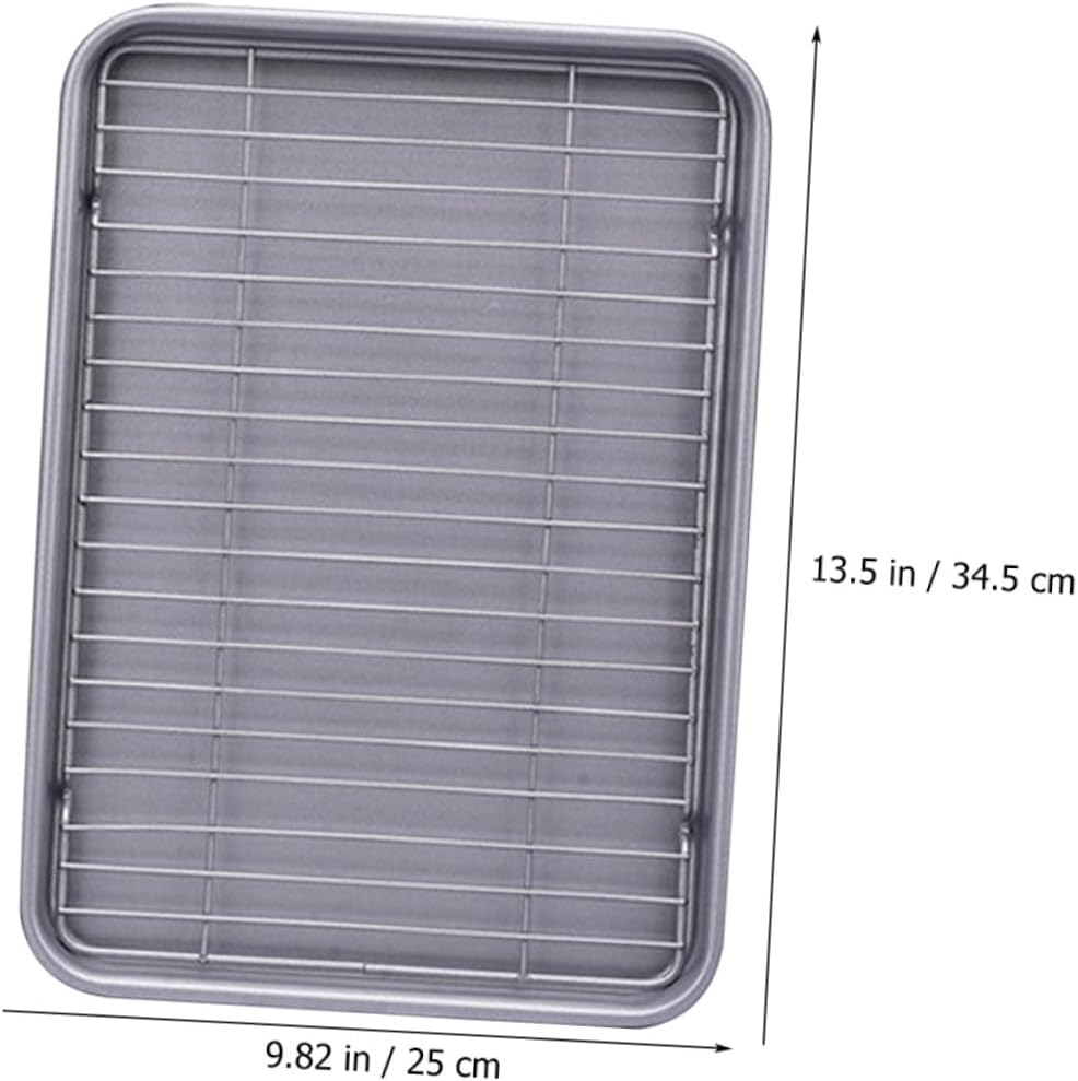 Package List 1 x Set of Baking Pan Features -Material:Carbon steel roaster pan with rack -Size:34.50X25.00X2.50cm/13.56X9.82X0.98in baking rack for oven cooking -Product Info:Baking dish -Color:Black small roasting pan with rack - The durable, non-stick and scratch- coating on our pan allow your food to slide out easily oven tray with rack. - A must-have bakeware tool, the baking pan will bring the efficiency and convenience to your baking reusable baking tray. - Good thermal conductivity, uniform heating, make your cake or bread more delicious cooking bake pans. - The practical baking pan is great for baking bread, cake, pizza, and more dessert roast pan with rack. - Made of heavy-duty carton steel material for thorough, even heating, bring more conveniences baking pan with rack.Goods Descriptionpan rack A must-have tool for kitchen oven baking.baking pan This baking pan is made of durable carbon steel, coated with nonstick surface, scratch and bend, safe and durable for use, not easy to break or deform, long serving life.bread baking pan This product is suitable for making cakes, bread, pizza, conditioning food, etc