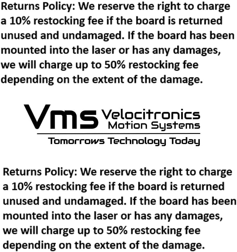 Unlock the full potential of your CO2 laser with the LightBurn & Laser GRBL Compatible LX2b Enhanced Controller Board - the ultimate upgrade for smooth, high-performance laser engraving and cutting.Key features/benefits:Reliable 2-axis GRBL Plug & Play upgrade for your K40 or larger CO2 laserWorks seamlessly with LightBurn or Laser GRBL software on Windows, Linux, or MacDesigned for 20W to 180W CO2 lasers, with direct bolt-in compatibility for K40 and custom lasersOptimized Vms-enhanced firmware for reliable, trouble-free operationElectrically isolated and certified USB to serial bridge for reliable operationAxis locking to hold position and prevent design shiftsHigh-speed laser engraving and cutting up to 800mm/secPrecision laser PWM control for outstanding grayscale and fine detailIntegrated A4988 drivers with customizable X & Y driver current for optimal speed, torque, and motor lifeLaser Power Maximum Output to control the maximum laser tube currentM7 relay output for air assist or external auxiliary control. Compatible with most AC or DC solid state relays, LX Series Relay Controller, or directly connect to some air valvesDX Panel communication port for the DX Panel display moduleFree firmware updates. The firmware is field upgradeable through Vms Bootloader ToolBoard mounting holes are compatible with the M2 Nano board for direct replacementFree technical support through Vms Laser Accessories Facebook Group1-year parts and labor warrantyBoard Dimensions: 98mm x 65mmThe LX2b controller board takes your CO2 laser to new heights of performance and precision. With its advanced Vms-Enhanced Grbl firmware, you'll enjoy reliable, trouble-free operation and innovative features like axis locking to keep your designs perfectly aligned. The LX2b board's precision laser PWM control delivers outstanding grayscale reproduction and fine-line detail, unlocking new creative possibilities.Whether you're a professional laser engraver or a hobbyist looking to level up your skills, the LX2b is the perfect upgrade for your CO2 laser. With its plug-and-play compatibility, you can seamlessly integrate it into your existing setup and produce higher-quality, more consistent results in no time. Say goodbye to design shifts, motor issues, and lackluster engraving - the LX2b puts the power of professional-grade laser control right at your fingertips.Items required for operation:High-quality USB-A to USB-B cableExternal 24V power supply (needed if stepper motor current exceeds 500mA per axis)Returns Policy: We reserve the right to charge a 10% restocking fee if the board is returned unused and undamaged. If the board has been mounted into the laser or has any damages, we will charge up to 50% restocking fee depending on the extent of the damage. Laser GRBL LX2b User Manual Version 1f