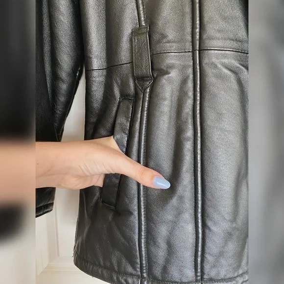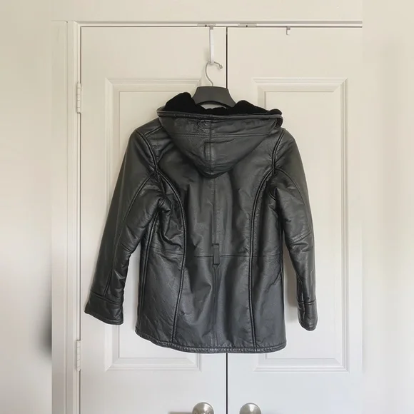 100% leather exterior, thick and warm inner lining, timeless coat! In excellent used condition! Belt loops if you want to add a belt (not included) zipper closure with a button at the neck. Two side pockets and an attached hood. Unisex, but Posh makes me choose boy or girl. Prior initials are on the tags for the child in case it’s stolen since it’s expensive