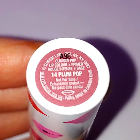 New & Unused in shade 14 Plum Pop.Clinique Pop Lip Colour + Primer is a luxurious yet weightless formula that merges bold, saturated color with a smoothing primer.BENEFITSRich color plus smoothing primer in one.Glides on effortlessly to a modern-velvet finish.Color stays true.Keeps lips comfortably moisturized.Allergy tested.Formulated WithoutParabensPhthalatesFragrance