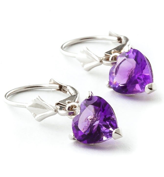 14K. GOLD LEVERBACK EARRING WITH NATURAL AMETHYSTS (White Gold)