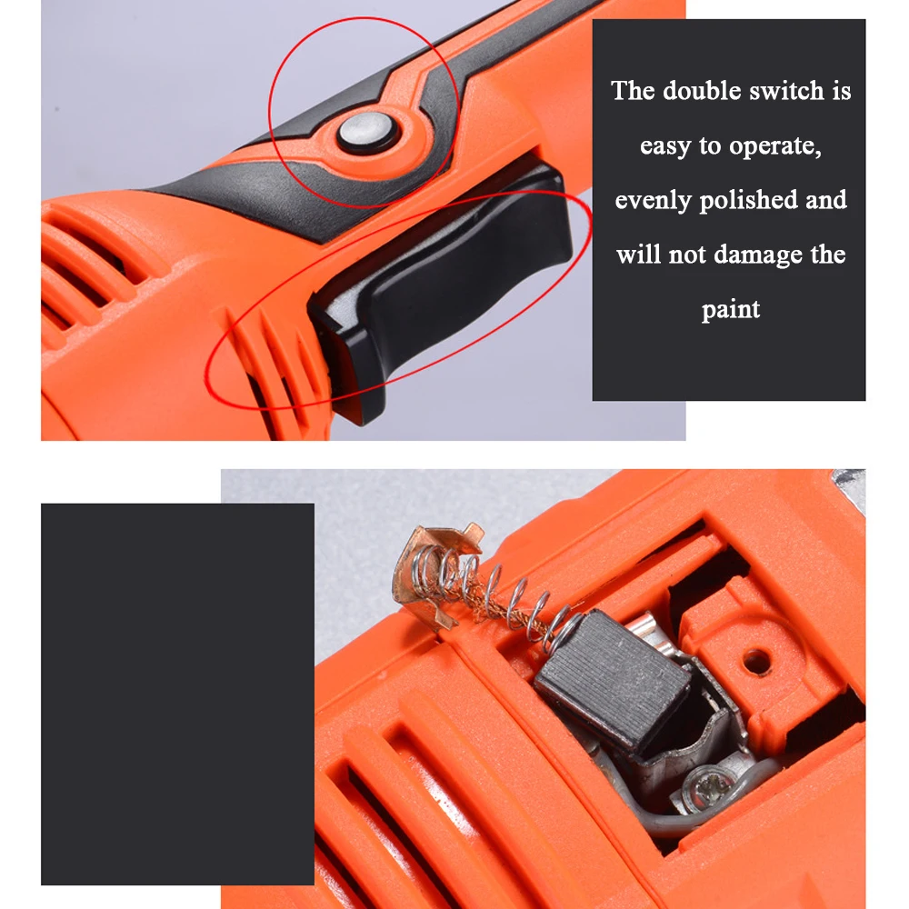 1-7 gear speed adjustable, can control the rotation speed of the machine, suitable for different materials polishing, waxing and sealing glaze. 1-3 gear for jade and porcelain, 3-5 gear for leather and floor, 4-7 gear for car and furniture.