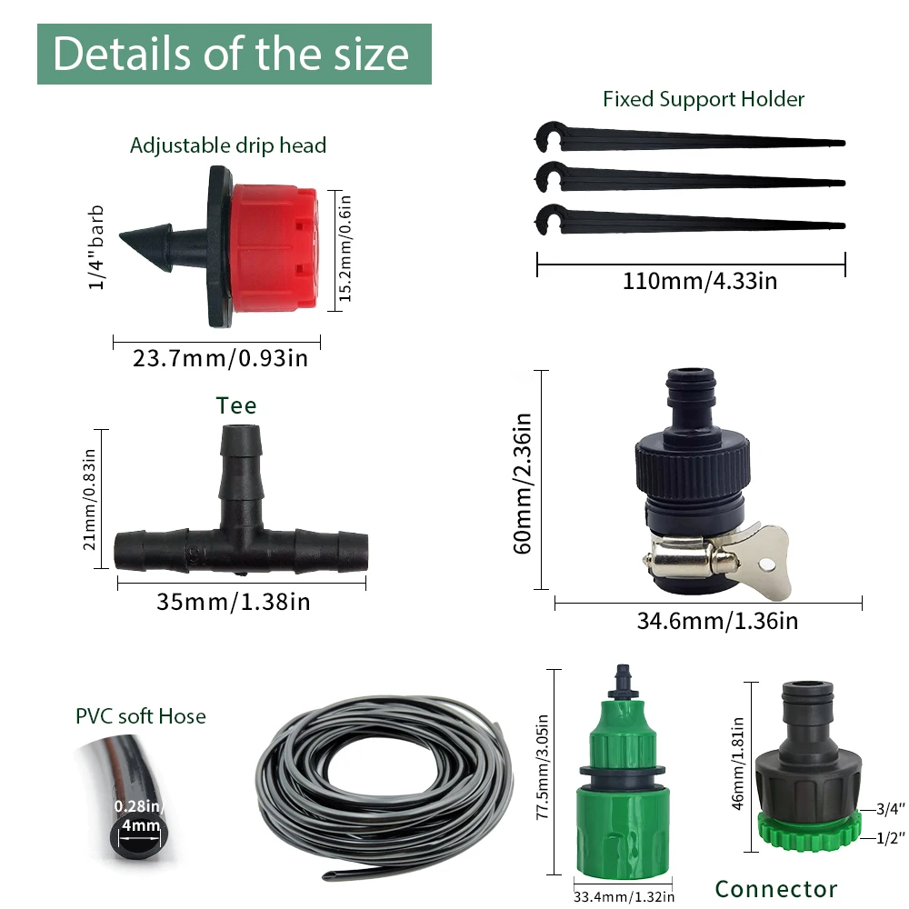 • Versatile Use :Ideal for various landscapes, this watering kit can be used in backyard gardens, greenhouses, orchards, and more.