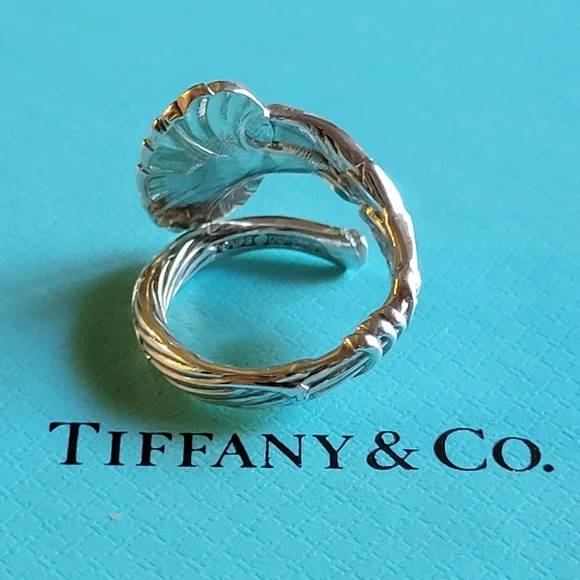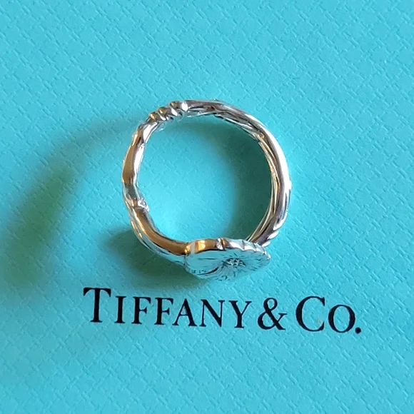 I am the only person that has been given written permission from Tiffany and Company to take pieces of their antique silverware and create these unique handcrafted spoon rings.This piece was crafted from an 1885 Tiffany & Company Demitasse Morning Glory Spoon from Tiffany’s Floral Motif collection. My pieces have been accepted into one or more art galleries for exhibit and sale. This confirms that the piece is gallery quality.Please note that the size is approximate and based solely on the measurements of my ring mandrel.This piece is sizable. Due to growing buyer fraud, all items are photographed with date stamp prior to shipping.The buyer agrees these photos will be used to settle any dispute about item condition.No returns will be allowed if photos contradict buyers claim.