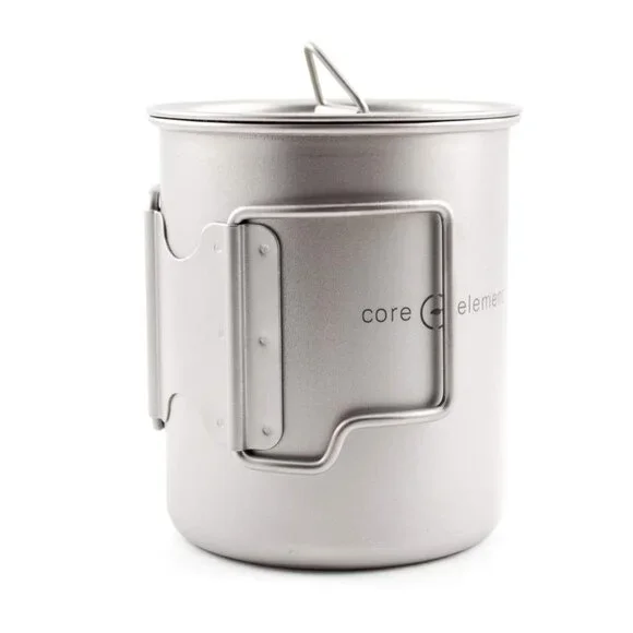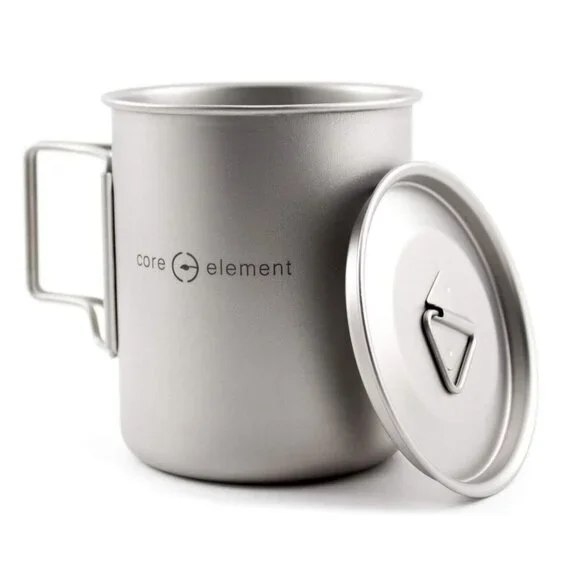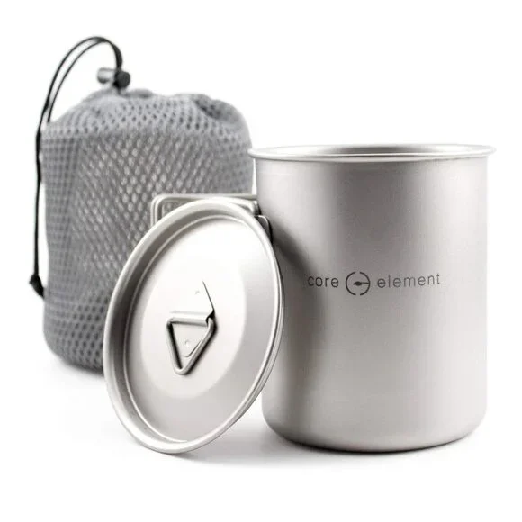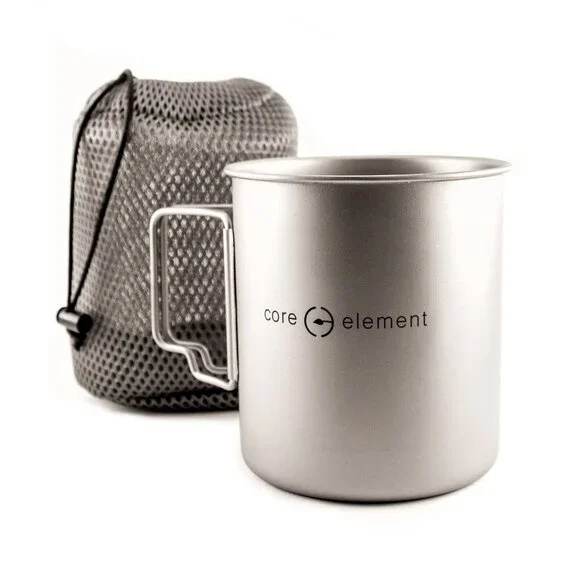 Core Element 2-Piece Titanium Cookware Set Mug 15oz 450ml/25oz 750ml Cup Mug Ultralight✅ TOUGH MUG - 100% Titanium is a strong metal. The collapsible metal handles are titanium too. Save as much space as possible in your backpack without sacrificing quality or durability like a pro camper. Comes with 1 mesh bag.✅ SPACE SAVER - Measures 3.25" (D) and stackable externally light weighs 3.0 oz / 4.22oz. Handles fold around the unit. Nest narrow water bottles, canisters, or other gear. Then snug this pot in the side pocket of your backpack. Done deal.✅ TIME SAVER - This titanium camping mug heats fast, cools fast. It’s also a safe, non-toxic, naturally-occurring metal that won't affect the taste of your food. Core Element titanium is resistant to corrosion or oxidation, which means no rust.✅ MULTI-PURPOSE - Camping pot or coffee cup? Your choice! Watch the sunrise with a cup of coffee, then rinse it out and use it to start breakfast, which means less to pack and fewer items to wash later.