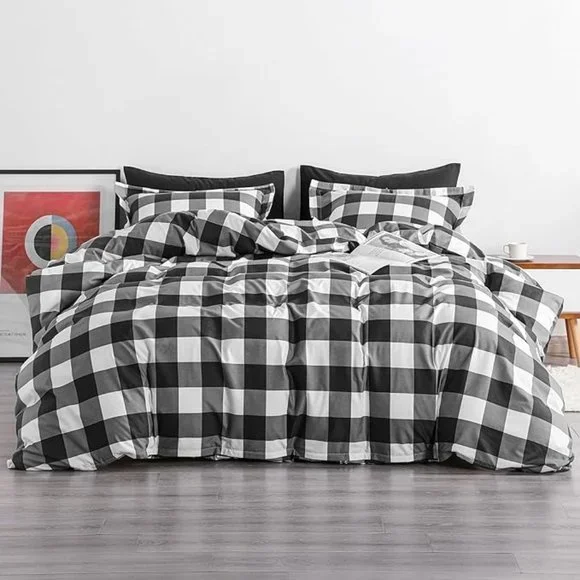 Colors: Black, Brink, Grid,PRODUCT FEATURES: Made from nice brushed microfiber to provide exceptional softness and comfort. Use of reactive printing and dyeing technology makes the color bright, durable, and does not fade. Exquisite workmanship can ensure longer durability to last for years. The hidden double zipper design easily allows you to insert and remove your duvet when needed. The four corner ties ensure that your comforter remains immovable in the cover.PRODUCT FUNCTION: The unique duvet cover gives your bedroom a stylish decoration, suitable for any room in your house, bedroom, guest room, children's room, vacation room, make your bedroom look like it's in a magazine. This ultra soft duvet cover keeps you comfortable all through the night and will guard your comforter, duvet, or quilt from dirt and dust to sustain for years. It’s a perfect gift idea for Mom, Dad, Son, Daughter, Thanksgiving Day, Christmas, New Year presents.PACKAGE INCLUDE: Twin Size: 1 x Duvet Cover (68 x 90 inches) + 1 x Pillow Sham (20 x 26 + 2 inches) Queen Size: 1 x Duvet Cover (90 x 90 inches) + 2 x Pillow Shams (20 x 26 + 2 inches) King Size: 1 x Duvet Cover (104 x 90 inches) + 2 x Pillow Shams (20 x 36 + 2 inches) (Comforter is not included in the set)EASY CARE: Machine wash cold, gentle cycle, tumble dry at low temperature, cool iron if needed. Do not bleachSize: Unisex Small, Mediums, large, Xlarge, XXlargeCondition: New With Tags