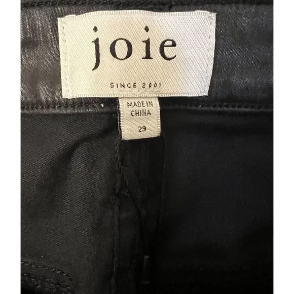 $228 New with Tags JOIE High Rise Park Skinny Jean, Black Sz 29CONDITIONNew with tags. No signs of wear. Excellent condition.SIZE29 MEASUREMENTSInseam: 27Waist: 29"Top to bottom: 37.5** Measurements are approximate FULL DESCRIPTIONBlack coated skinny jeans with sleek fitZipper and button closureAnkle zipsFront and back pocketsEdgy look with zip detailing and hemsRN#: 105230 CA#: 58350MATERIAL98% Cotton 2% ElastaneThese black jeans are just what you need to spice up your jean collection. The edgy details give these jeans a unique look. Perfect with a graphic tee and sneaks or dress up with heels and a blouse! All orders ship same or next business day! All reasonable offers are considered :)