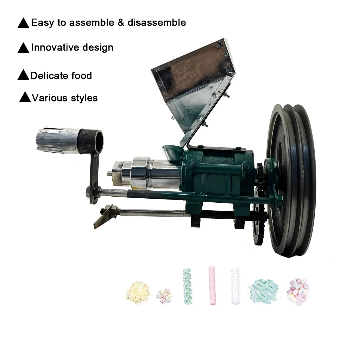 This machine has a compact and simple structure, and can process all kinds of rice and corn, and can produce peanut type, hollow type, twist, biscuit type and other shapes of puffed food. The taste is crispy and sweet and crunchy, and it is a nutritious food for both young and old.