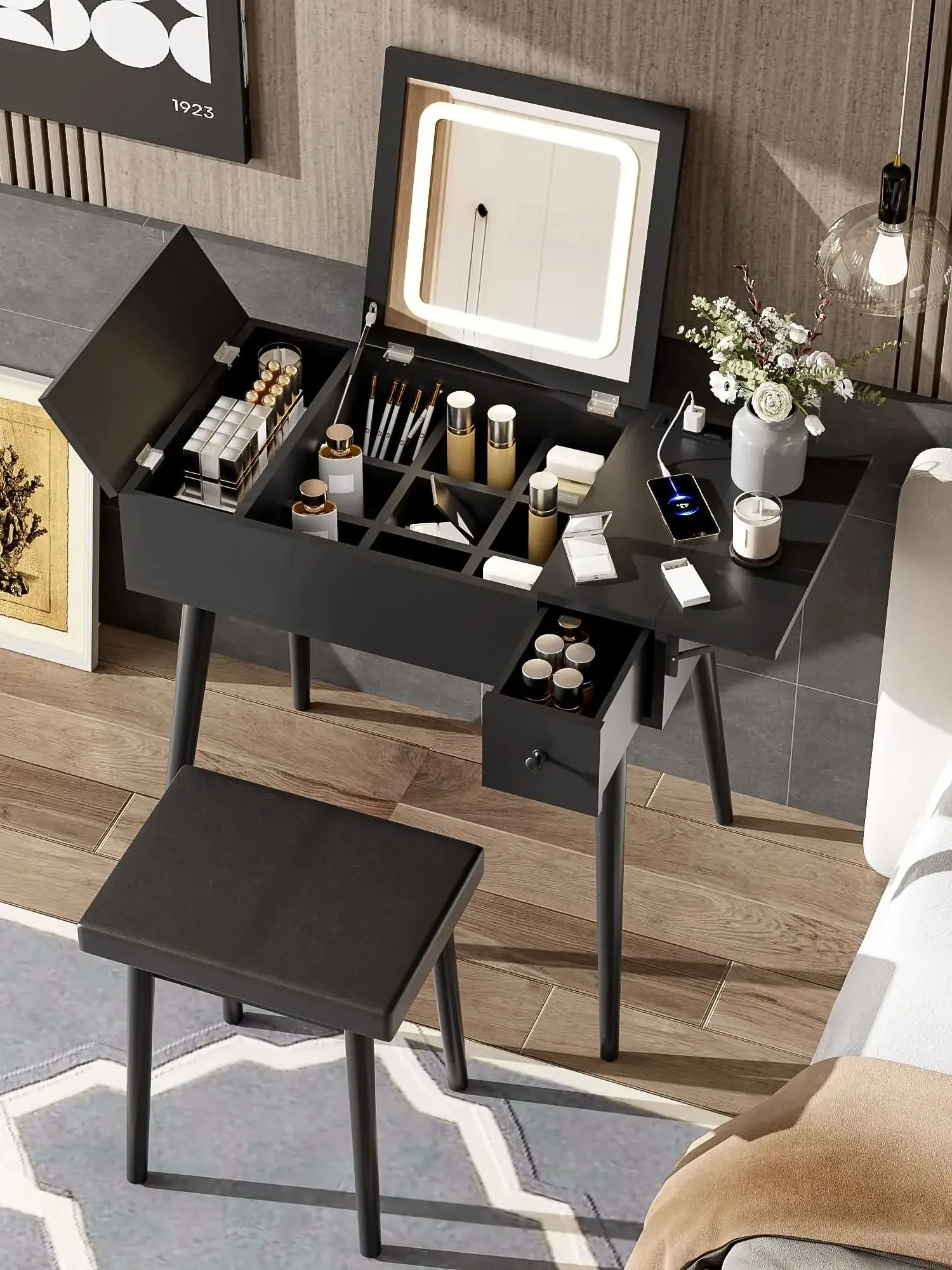 Versatile Vanity Desk: Vanity open the folded mirror, it is a dressing table to meet your daily make-up and dress up needs, close the mirror, it can be turned into a writing desk for you to write and work.