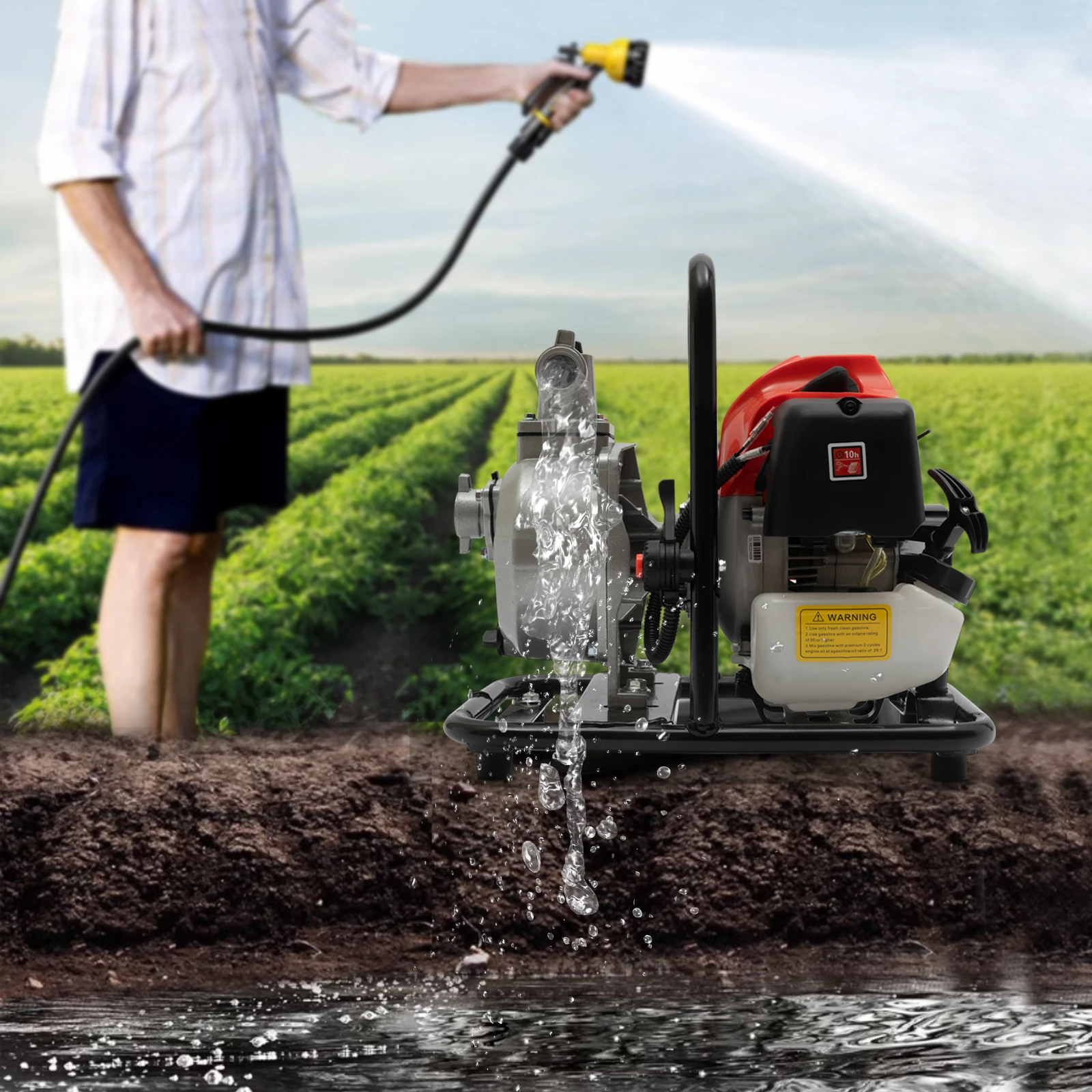 Efficient and Time-saving: The pump's engine adopts strong two-stroke power, and cylinder strength is bigger and stronger. When this pump works, the maximum flow rate can reach 8-10m³/h, which makes pumping and watering quick and easy.