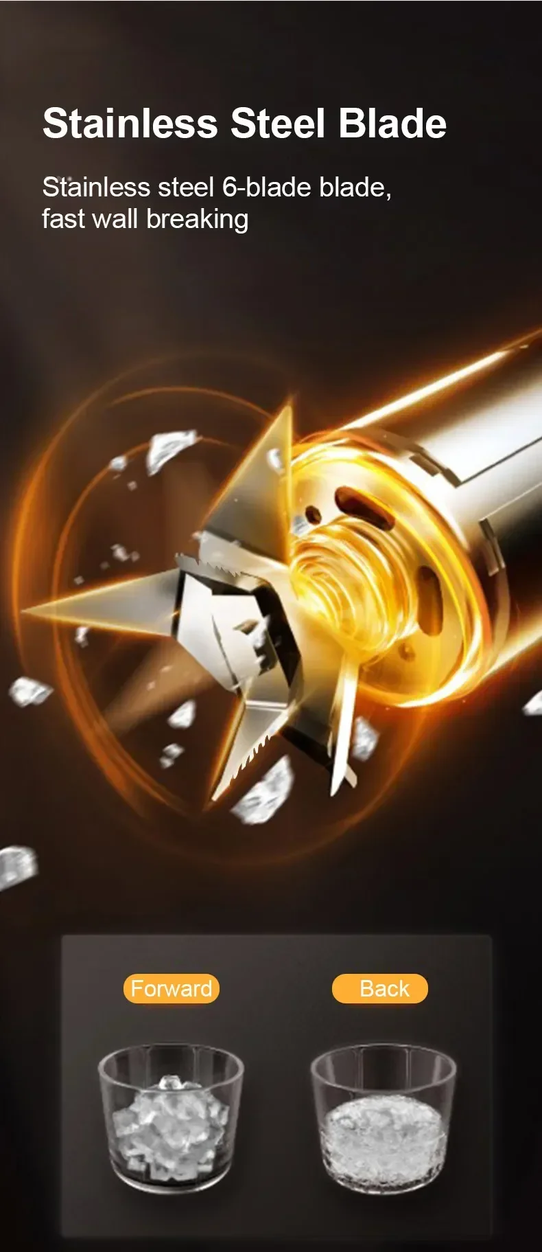[Powerful 6 Blades]: This portable blender is equipped with 20000RPM speed 6 ultra-sharp 304 stainless steel blades, the strong blades lift and push down quickly, mix completely fruits and vegetables occurring from the bottom of the cup