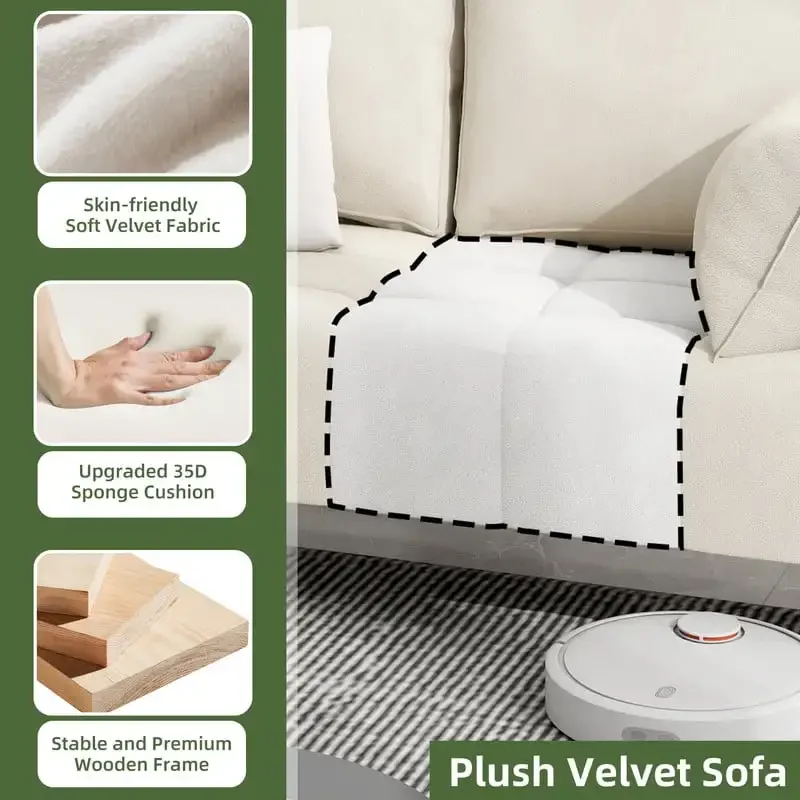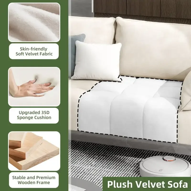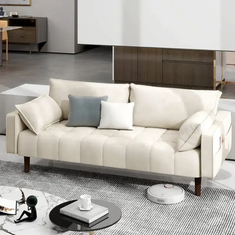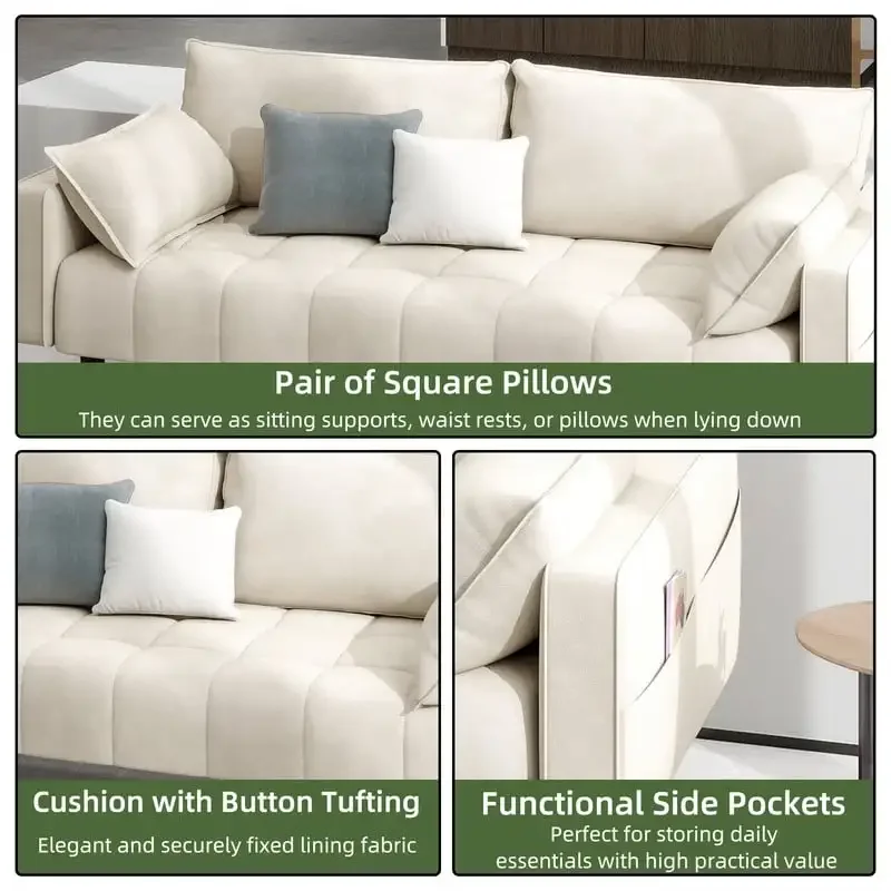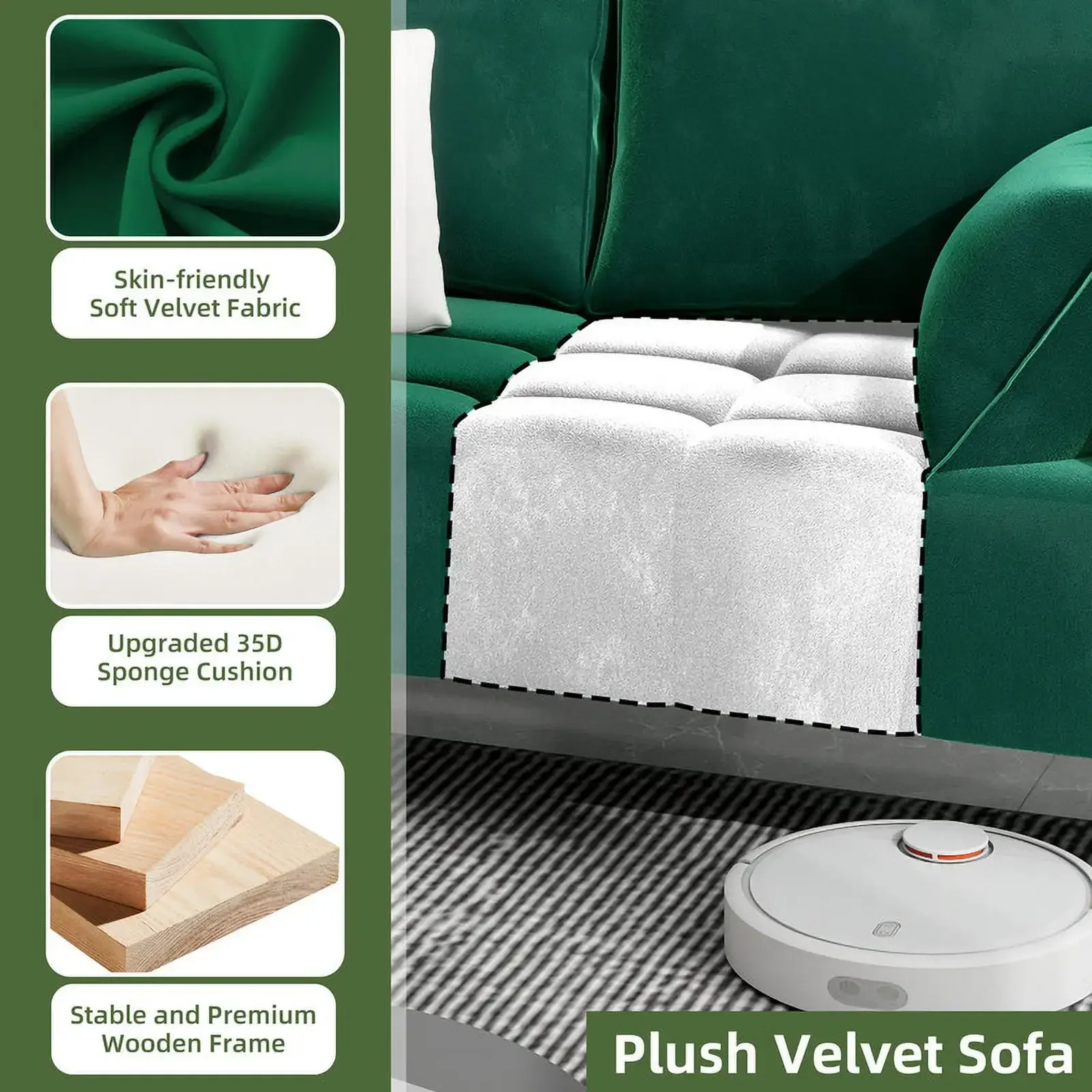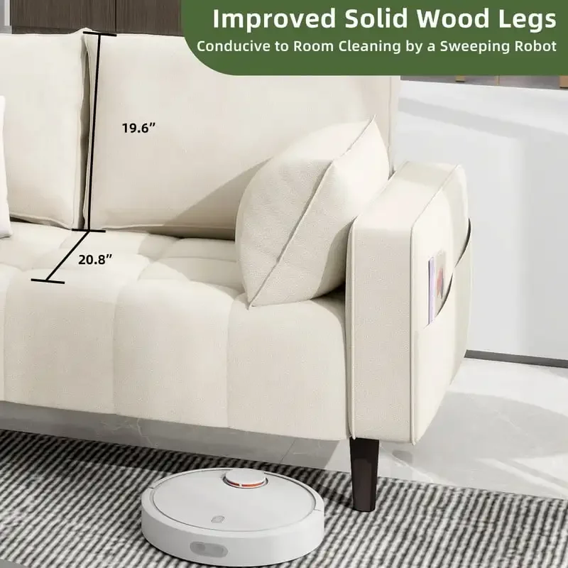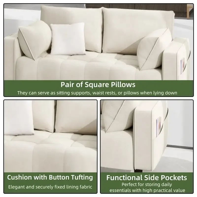 Immerse yourself in the allure of mid-century elegance with our loveseat sofa. Imagine sinking into luxurious velvet, enveloped by soft cushions in a cozy retreat. Let the smart storage pocket keep your space neat, while sturdy solid wood feet ensure unwavering support for serene relaxation. This piece, a blend of timeless charm and modern comfort, is great for adding a touch of sophistication to your living room, study, or even a cozy reading nook.