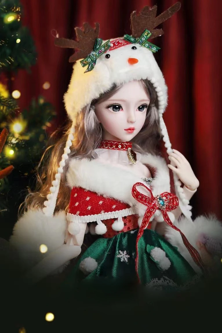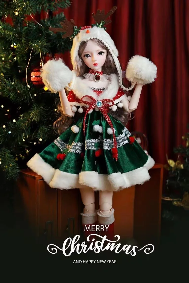 60CM BJD Doll 1/3 Ball Jointed Doll Cute Madeup Face Full Set With Christmas Suit DIY Toys Gift For Girl Figures Dolls