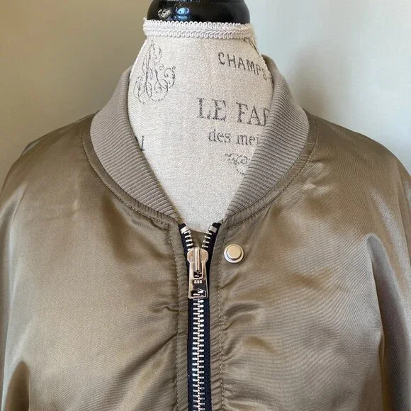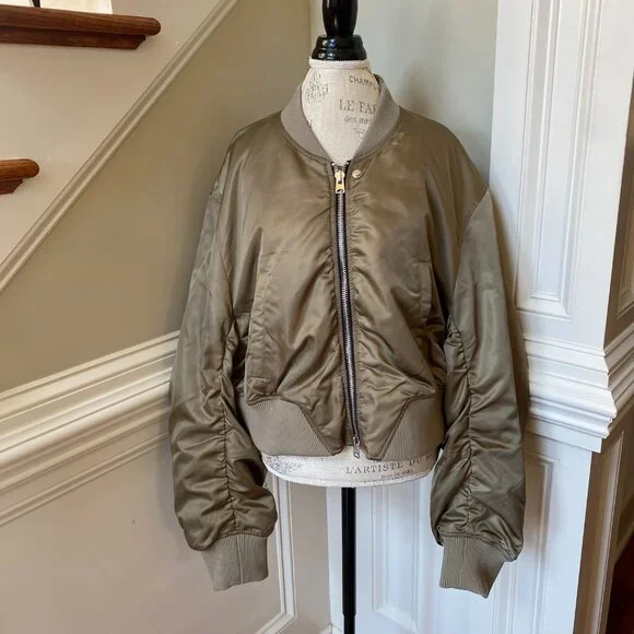 AGOLDE Shoreditch Ski Club Jett Bomber Jacket Coat Womens XL Army Green Satin