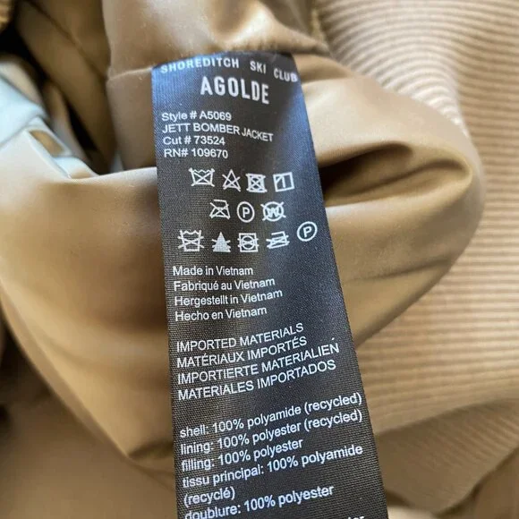 AGOLDE Shoreditch Ski Club Jett Bomber Jacket Coat Womens XL Army Green SatinWomen's Jett Bomber JacketAGOLDE x Shoreditch Ski Clubsize:XLarmpit to armpit - 26"length (center neck on back to bottom) - 42"Solid Army Green ColorFull Zip Front ClosureDropped ShouldersSlightly Cropped LengthRibbed TrimLong SleevesCurrent ModelTimeless & VersatileWomen's AGOLDE x Shoreditch Ski Club Jett Bomber Jacket in a size XL.The ultimate layering piece from the West Coast to East London. The Jett Bomber Jacket will layer on to your everyday rotation to create a versatile statement silhouette. The relaxed fit is designed with a dropped shoulder, cropped body and curved sleeve shape. Crafted from recycled nylon and lightly quilted with recycled fibers. Originally $550.Fast Same Day Shipping!ST
