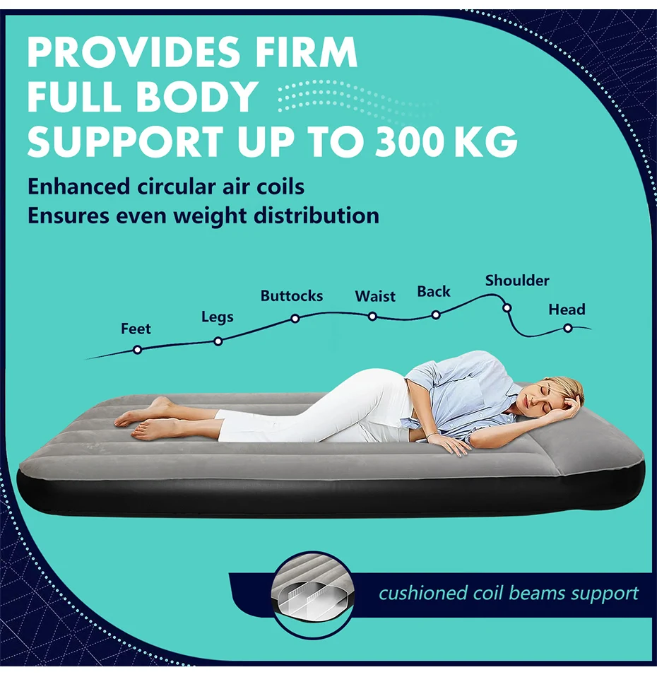 This updated air cushion adopts a coil beam structure design, which can effectively support the spine and body. A height of 25cm ensures good sleep on cold and damp ground.