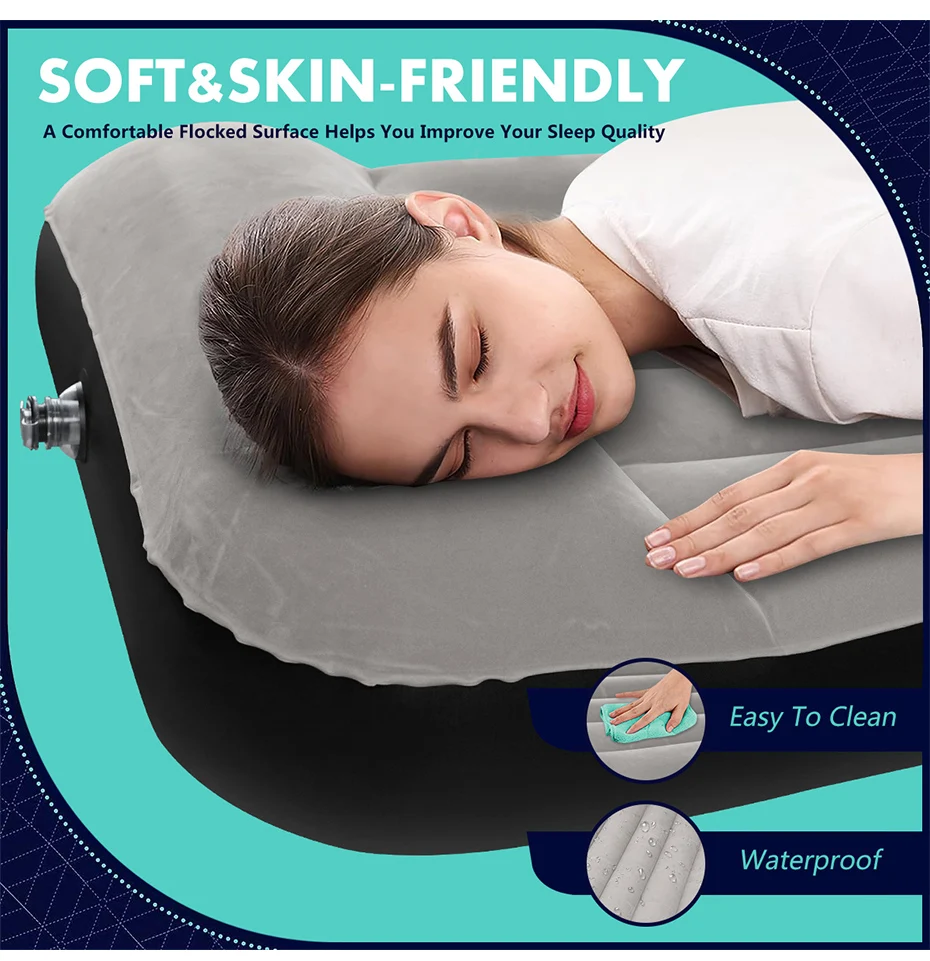 The air cushion is made of high-quality, thick, leak proof and high-quality materials to ensure that the mattress is firmly sealed and prevents sinking. Soft and skin friendly, comfortable.