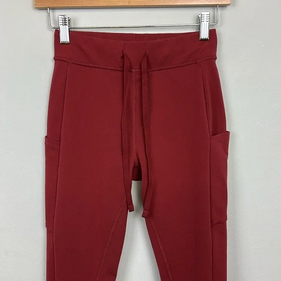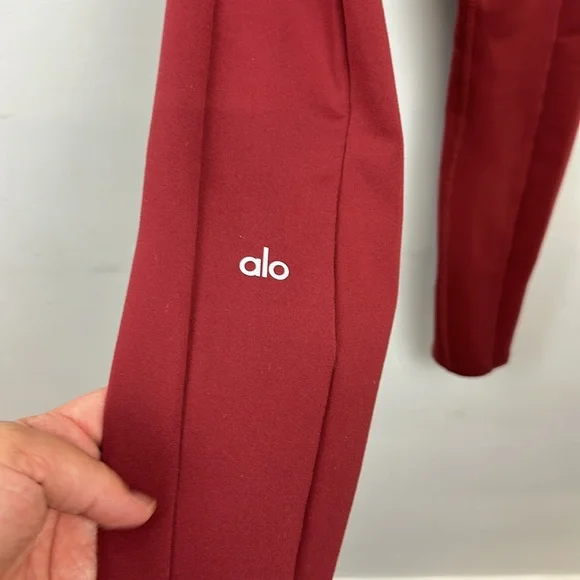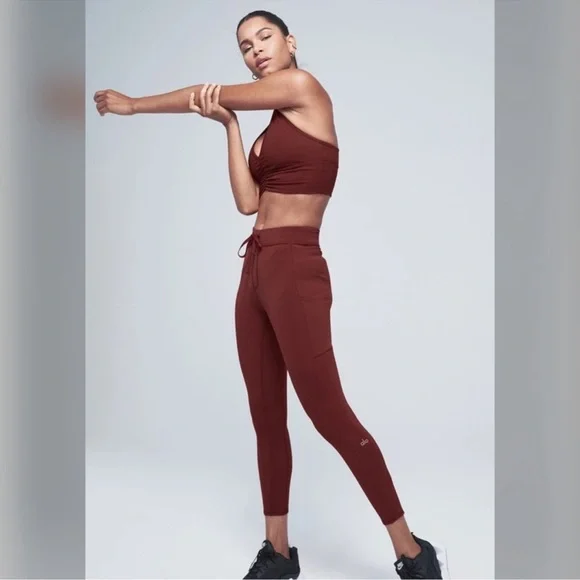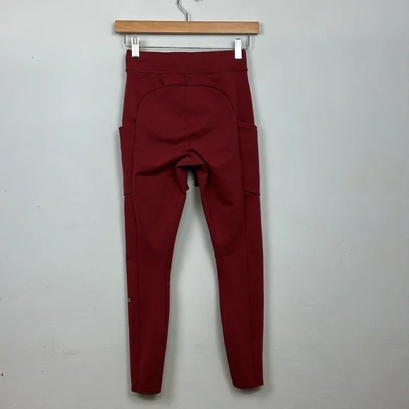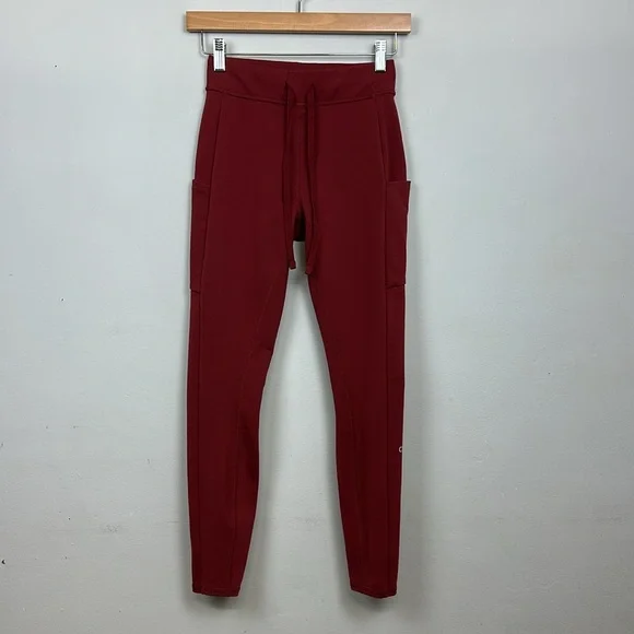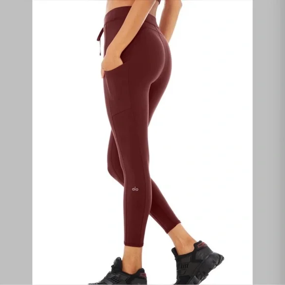 Alo 7/8" Check Point Pocket Leggings in Cranberry Sz XSYour favorite sculpting legging and sweatpant combined. The 7/8 High-Waist Checkpoint Legging is made with our signature sculpting, lifting Airbrush fabric and has a skinny waistband with drawcords, open side pockets and elevated seaming. Show it off with a cropped tee or cami.Sweet skinny waistband with drawcordsSide pockets & elevated seamingDesigned & uniquely fit for every sizeWear-tested by our in-house team for the perfect fitHigh rise & hits just above ankleSize XS25” inseamGreat conditionBin 22