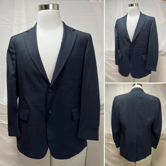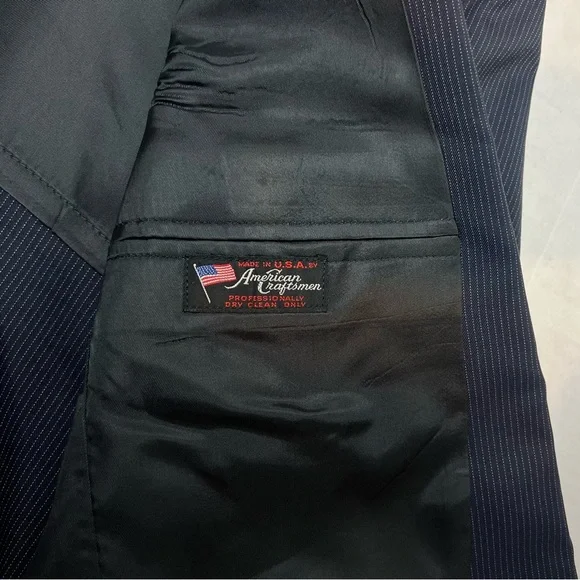 In Very Good Condition.Measurements taken laying flat: Jacket:Across Shoulders: 18"Underarm to underarm: 22"Waist: 20.5"Length (taken on the back of the jacket in the center, from the base of the collar to bottom hem): 30.5"Sleeve length (from shoulder to sleeve end): 25"Pants: Waist: 18.5"Rise: 11.5"Inseam: 29" (can be let out 1.5")