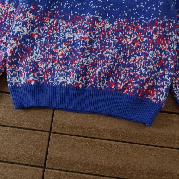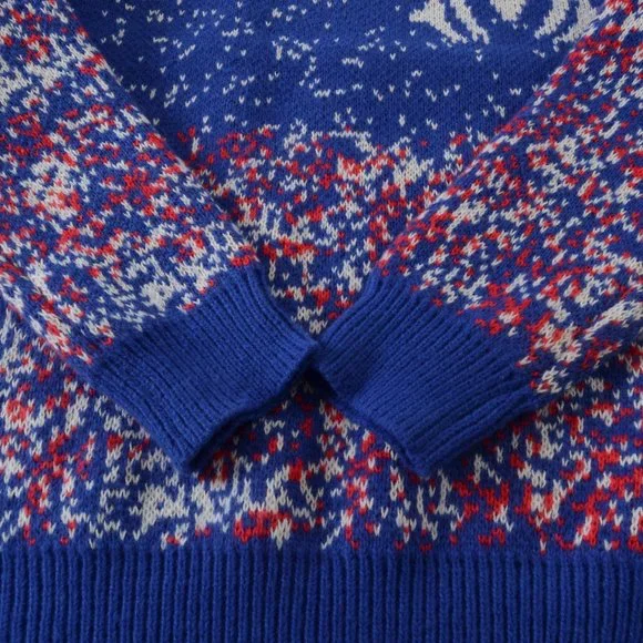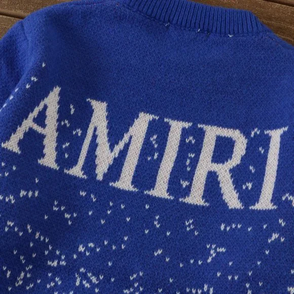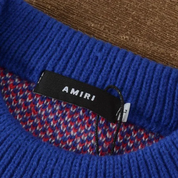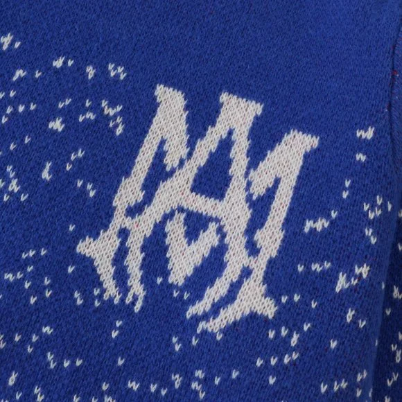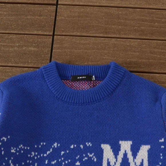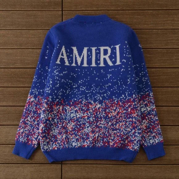 AMIRI M.A. Colorful Starburst Knitted SweaterBrand new with tagsColour, blueMaterial, 100% cotton(Woolen fabrics)Hand wash, machine washUnisexOnly available sizes are listedModel size: LSize Chest width Length Shoulder SleeveS ---------55 ------66 -------57 ----------52M ---------57 ------68-------58 ----------53L --------59 ------70 -------59 ----------54XL -------61-------72 -------60 ----------55XXL -------63-------74 -------61 ----------56Size chart in cm (allow 1-3 cm error)Size Suitable for height (cm) Suitable for weight (kg)S ------------------160-165 ------------------60-65M ------------------165-170 ------------------65-70L ------------------170-175 ------------------70-75XL ------------------175-180 ------------------75-80XXL ------------------180-185 ------------------80-85