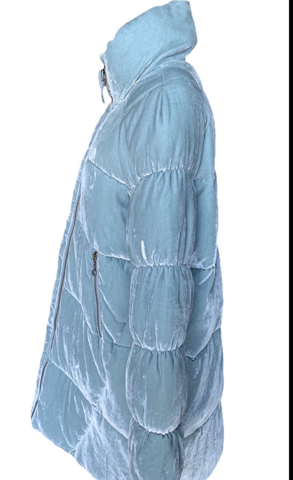Anthropologie Odd Molly Women’s Embrace Velvet Long Gray-Blue Coat Size 3 Large