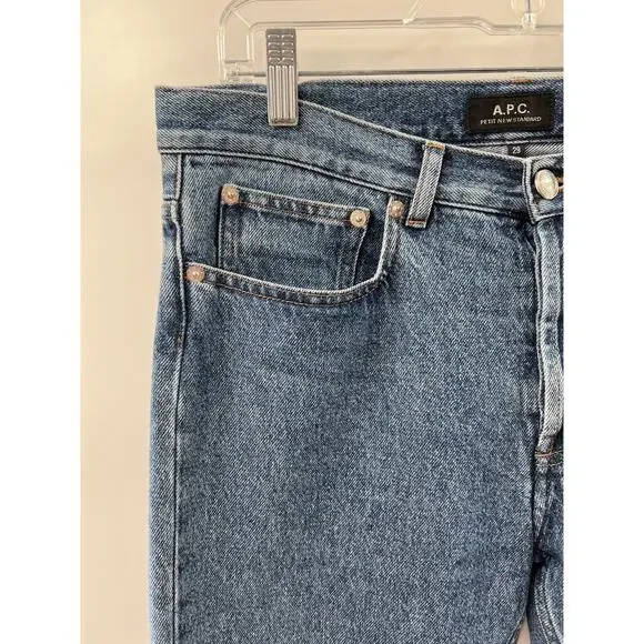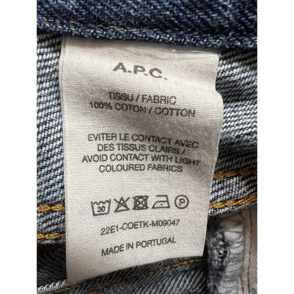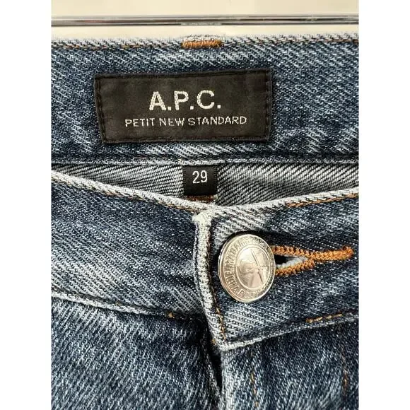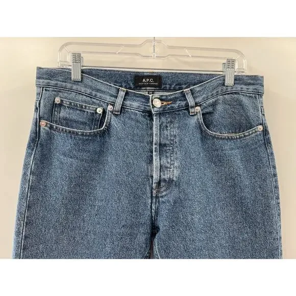 A.P.C. Men’s Slim Fit Medium Wash Button Fly Cotton Jeans Size 29 X 30 (Hemmed) (JB)Jeans are in great, preowned condition. Medium wash with button fly. Waist measures 15 inches. Rise measures 10 inches and inseam measures 30 inches. Please note and see photos, jeans have been altered so keep that in mind.Please view all photos and feel free to ask questions.