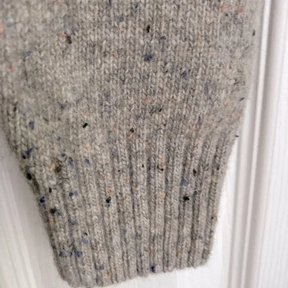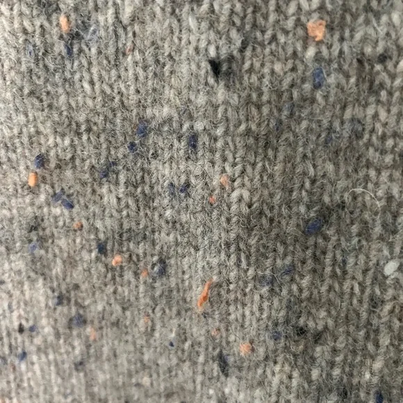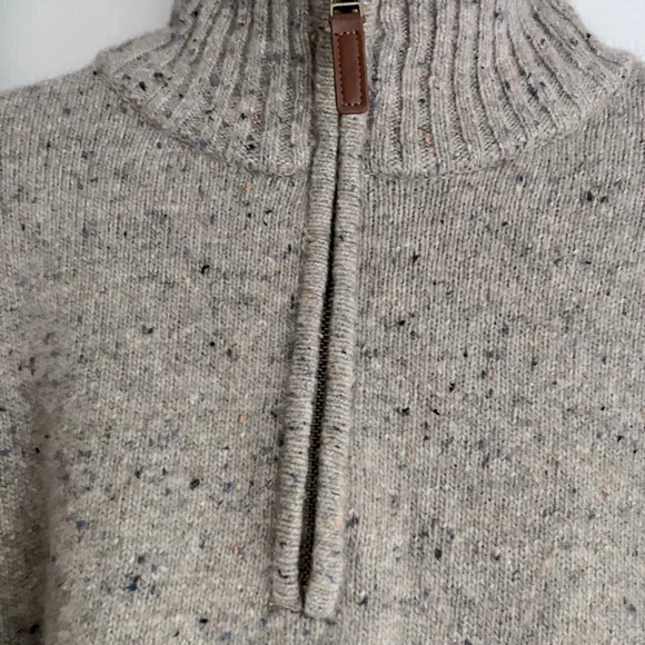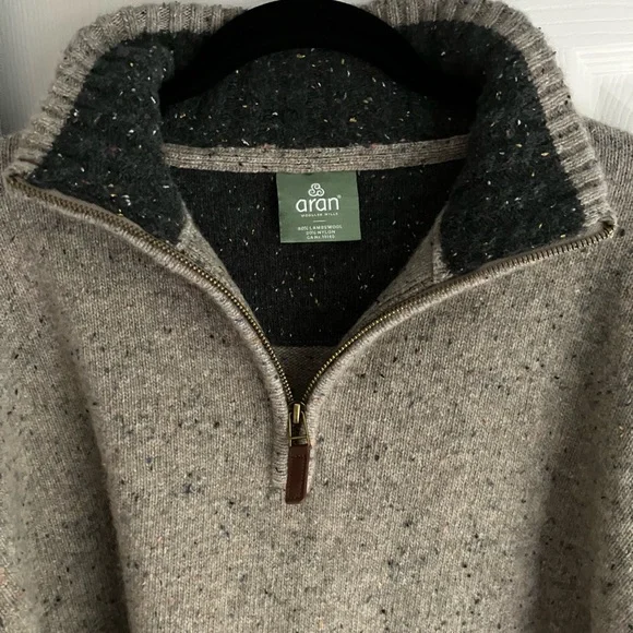 Aran Irish style knit sweater Pullover with quarter zipLong sleeves80/20 lambs wool nylon blendExtremely soft to touchNot scratchyBeautiful light gray with blue coral flecksPerfect for layering Grandpa core Dry clean or hand washDry flatGently used conditionNo flawsLMeasurements:Shoulder 23”Chest 48”Sleeve 23”Length 25”Hip 38”
