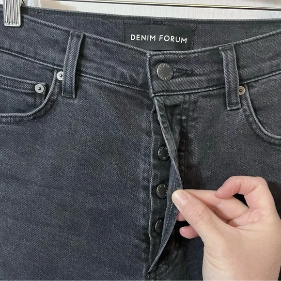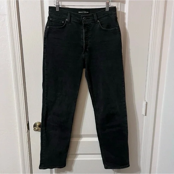 Denim ForumThe Arlo Hi-Rise Straight JeanBlack. Size 27• Made with regenerative cotton• Button fly• Five-pocket styling• Regenerative agriculture embraces holistic techniques that require less water and fewer chemical fertilizers, herbicides and pesticides. Plus, it makes efficient use of the land and complements local ecosystems.Materials & Care• Designer Wash Name: Black Eyeliner• Origin: Fabric from Italy• Content: 98% cotton, 2% elastaneExcellent, like new condition