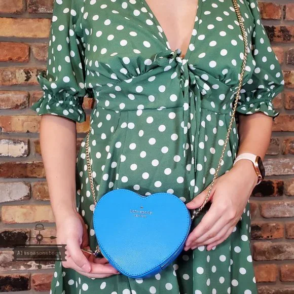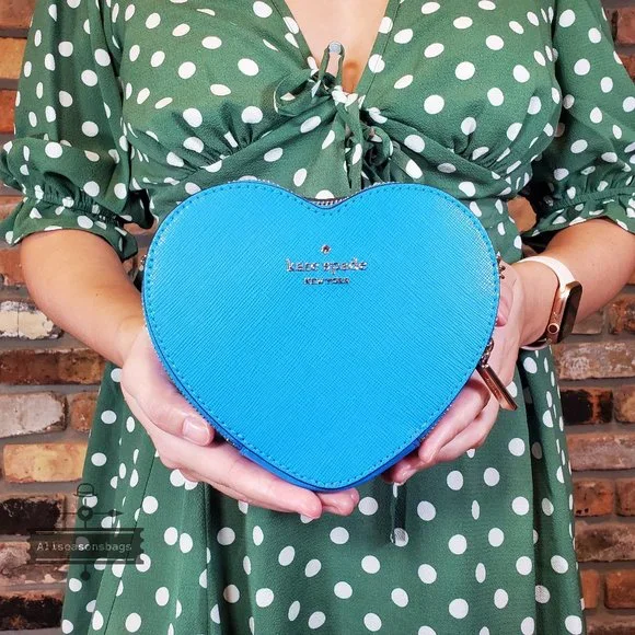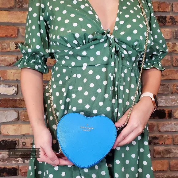 ** Authentic Kate spade Love Shack Mini Heart Chain Crossbody Bag Purse BLUE NWT*** CLOSET CLEAR OUT!!! LAST PRICE - no more reductions, FIRM PRICE ***Model wears size XS so items may appear larger in photos. PLEASE check all MEASUREMENTS before making a purchase to ensure this is the exact size that you’re looking for.** New with tag bag, purse, trendy5.1" h x 5.9" w x 2"d ( super small bag! check measurements please)Strap drop: 23"Saffiano leatherKsny metal pinmount logoTwo way spade jacquard liningZip closureno dust bagPlease be aware that every bag is unique and the pattern you receive may differ from the pattern in the photos!