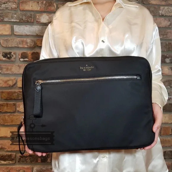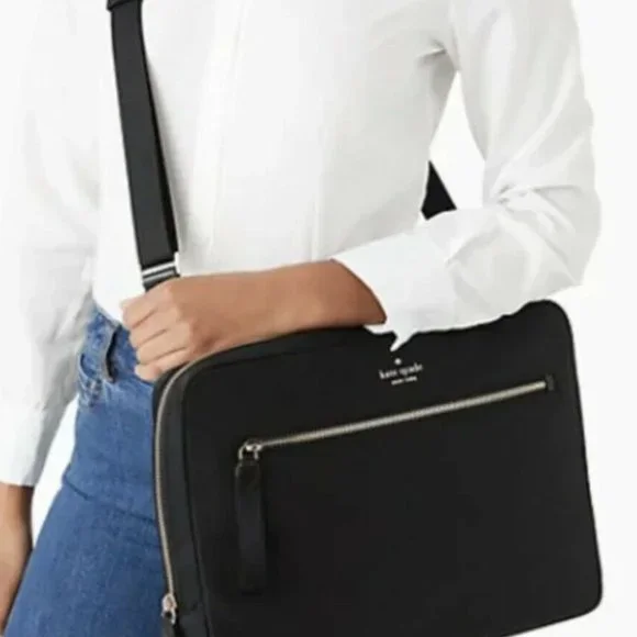 ** AuthenticNWT Kate Spade CHELSEA BLACK LAPTOP SLEEVE BAG Crossbody Authentic NYLON NWT *** CLOSET CLEAR OUT!!! LAST PRICE - no more reductions, FIRM PRICE ***Model wears size XS so items may appear larger in photos. PLEASE check all MEASUREMENTS before making a purchase to ensure this is the exact size that you’re looking for. Black. Material: Nylon. Size: 10.6"h x 14.8" w x 1.7"d.** New with tag bag, purse, trendyPlease be aware that every bag is unique and the pattern you receive may differ from the pattern in the photos!