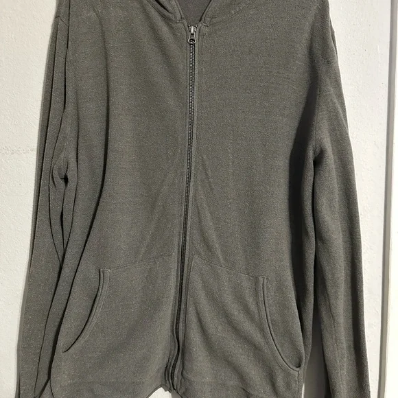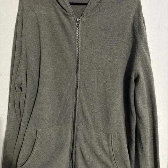 Experience the ultimate in comfort with the Barefoot Dreams Cozy Gray Zip Up Sweater, perfect for layering in any season. This sweater features a sleek zip-up design and a ribbed collar, offering a classic and versatile look. Its solid gray color ensures it pairs effortlessly with any outfit, making it a must-have staple in your wardrobe.