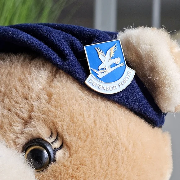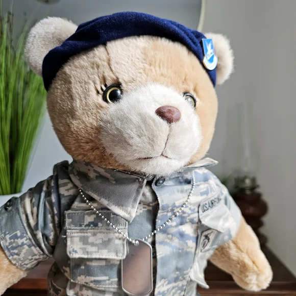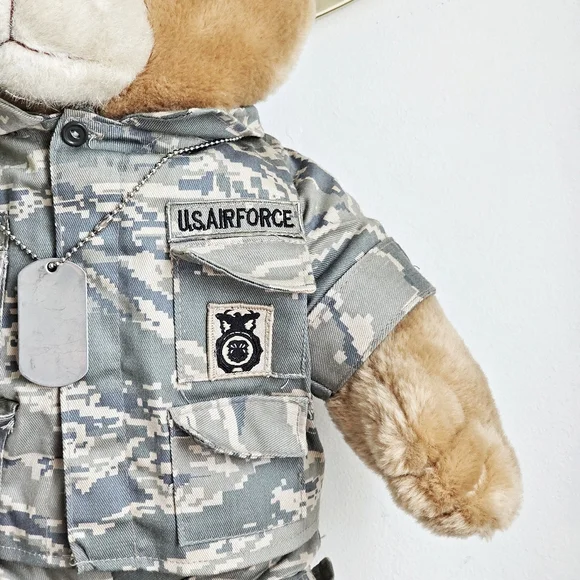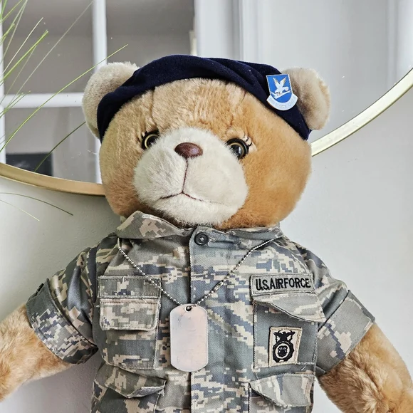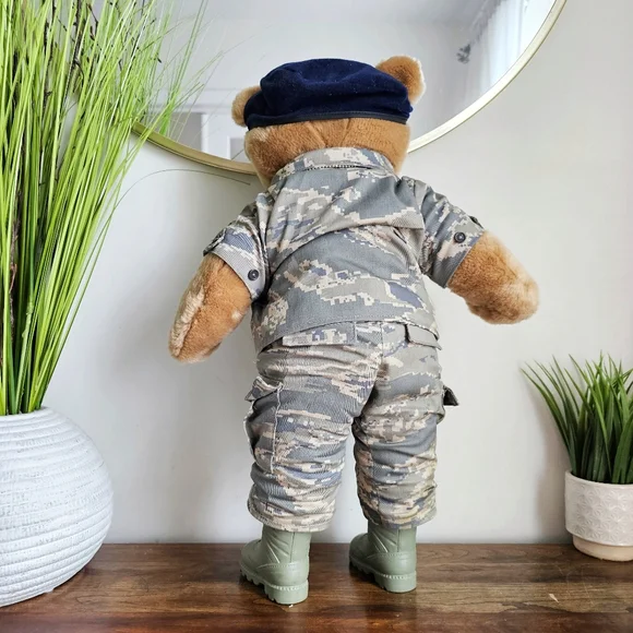 United States Air Force (USAF) "Defensor Fortis" Military Suit Plush Teddy Bear21"Vintage 90s Bear Forces of America tan plush teddy bear wearing a very detailed US army uniform. It is propped up in the pictures and can not stand on its own.Very beautiful condition!Always fast shipping and packed with care.Thank you for considering my listings!#G10