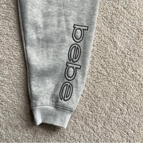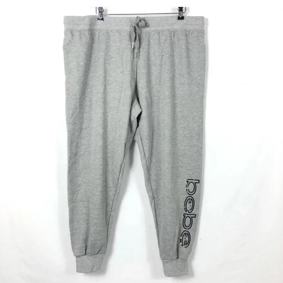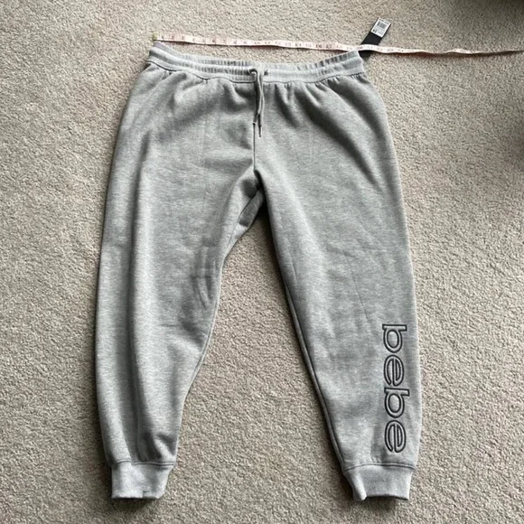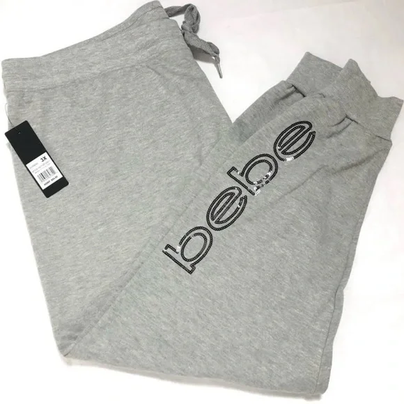 Bebe Sport Sweatpants Jogger Size 1X Heather Gray Color GreySize XLCan’t see in pictures but a flattering ribbed strip down each side of pant legsStyle:Joggers, SweatpantsMaterial:Fleece, Polyester, SequinInseam Size:RegularSize Type:RegularGray Knit Jogger With Black Sequined Logo. Draw Waist. New With Tags Athleisure Athletic Workout Jogger Lounges Casual Plus Grey Gray Light Gray Logo Bebe