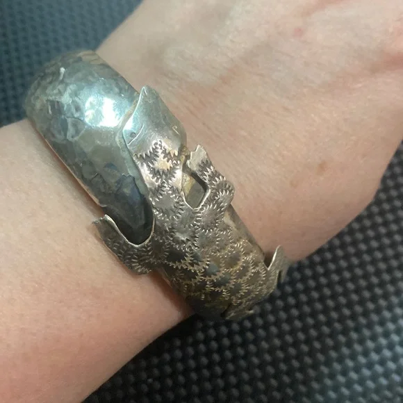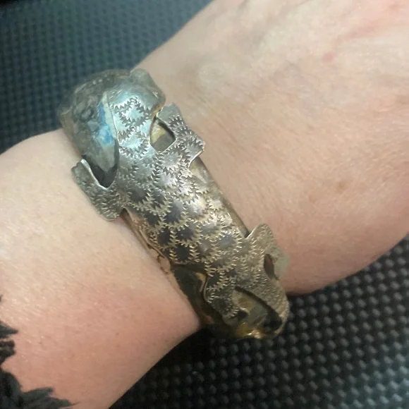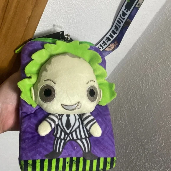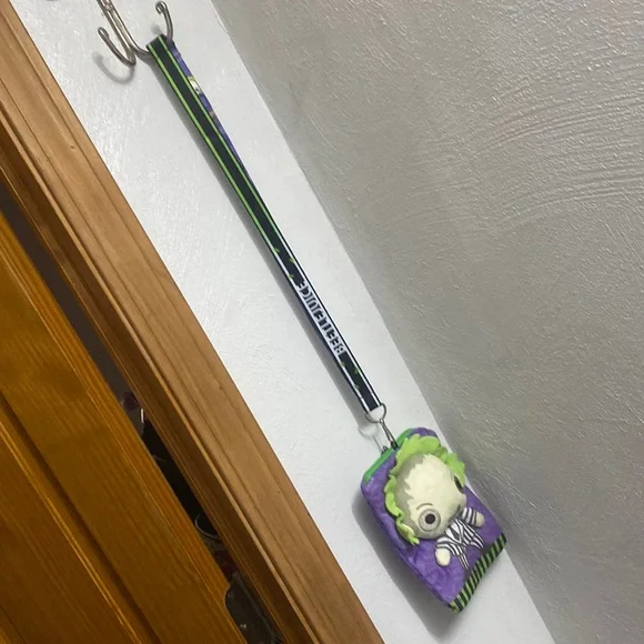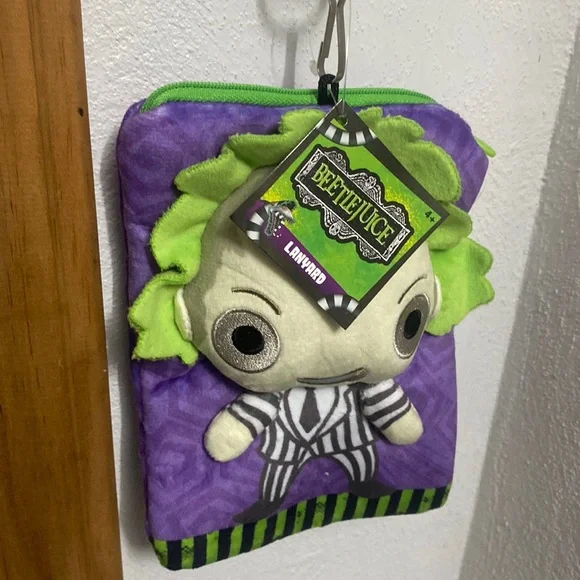 If you love Beetlejuice this is a great set for you with Fun + fashion in mind with the awesome sterling silver lizard bracelet all 925 stamped with the textured details. That catch the light 2.75 round & almost 1”wide - An original piece with quality & artisan craftsmanship. Enjoy having your bag/lanyard while wearing the awesome bangle - the bag/lanyard are all new w tags & no longer in rotation…Great pairing…Enjoy the fun of this Beetlejuice lanyard With attached loan/ID/money holder measures = 7.25 down 5.25 across with the adorable graphics super soft the lanyard itself is 19 down.