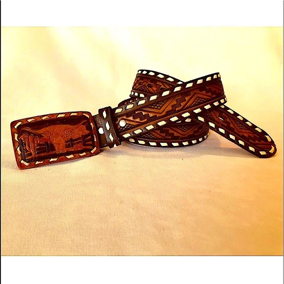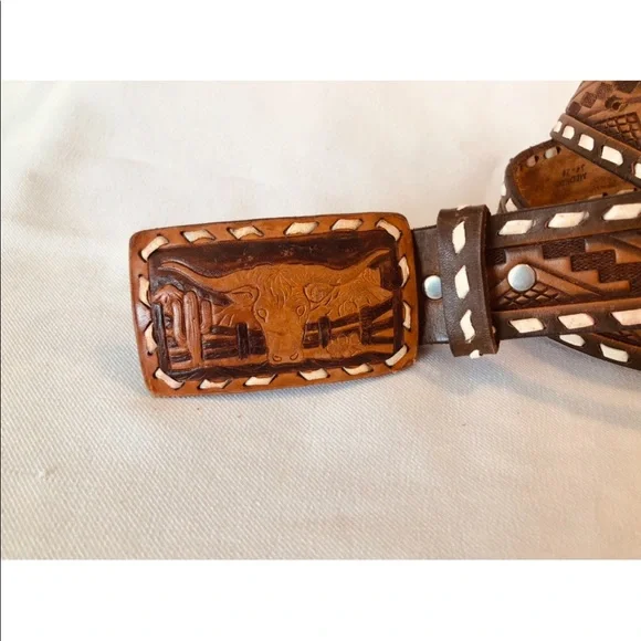 * * THIS IS FOR THE BUCKLE ONLY * VINTAGE BROWN WESTERN AZTEC HAND TOOLED LEATHER BELT BUCKLE * LEATHER BUCKLE with BULL HEAD,FENCE & CACTUS DETAILED STAMPING * BUCKLE IS 3 1/2” x 2”BELT BUCKLEBULL HEADCACTUSLEATHER FENCEWESTERNCOWGIRLCOWBOYHANDMADEHAND TOOLEDARTISANLEATHERBULL HEADCACTUSHAND STAMPEDCOACHELLAAZTECINDIANUNISEX HIPPIEGYPSYBOHOCHICRODEOBOOTSJEANS