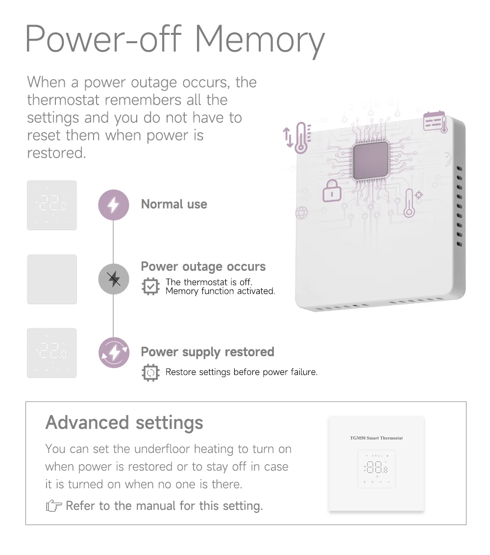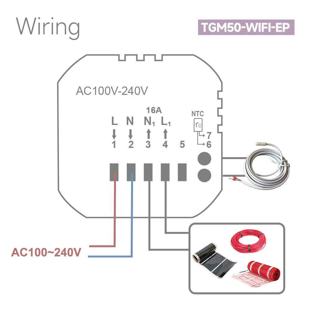 TGM50-WIFI-EP(for electric floor 16A) is used control Heating Cable/Heating Mat/Heating Flim etc. electric floor/underfloor heating system.