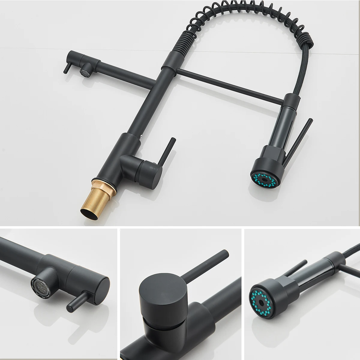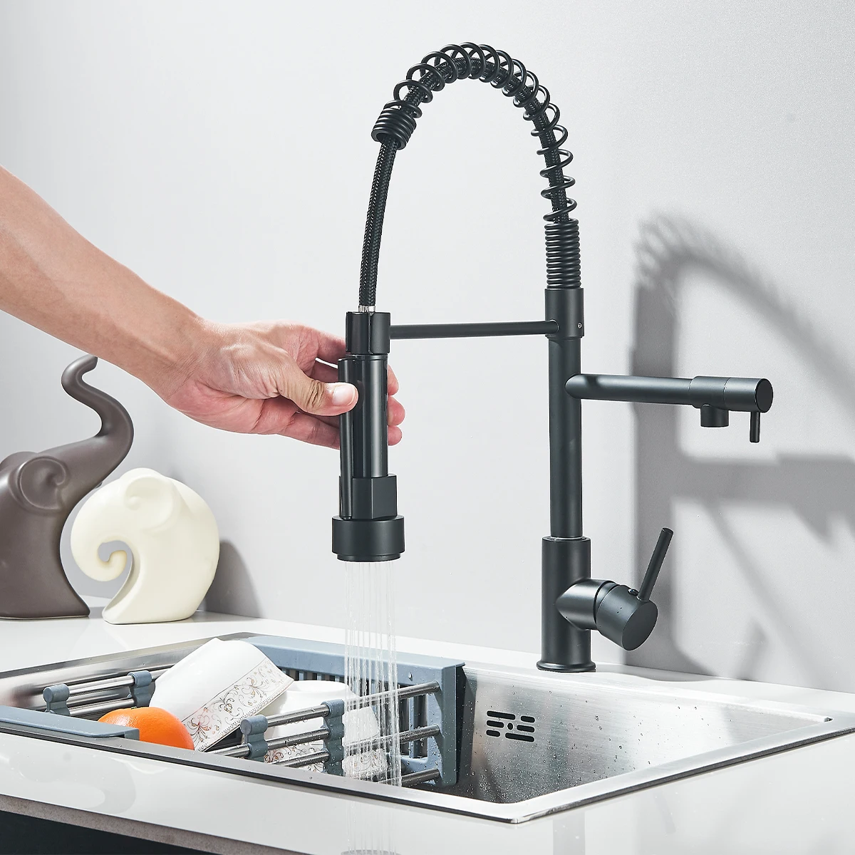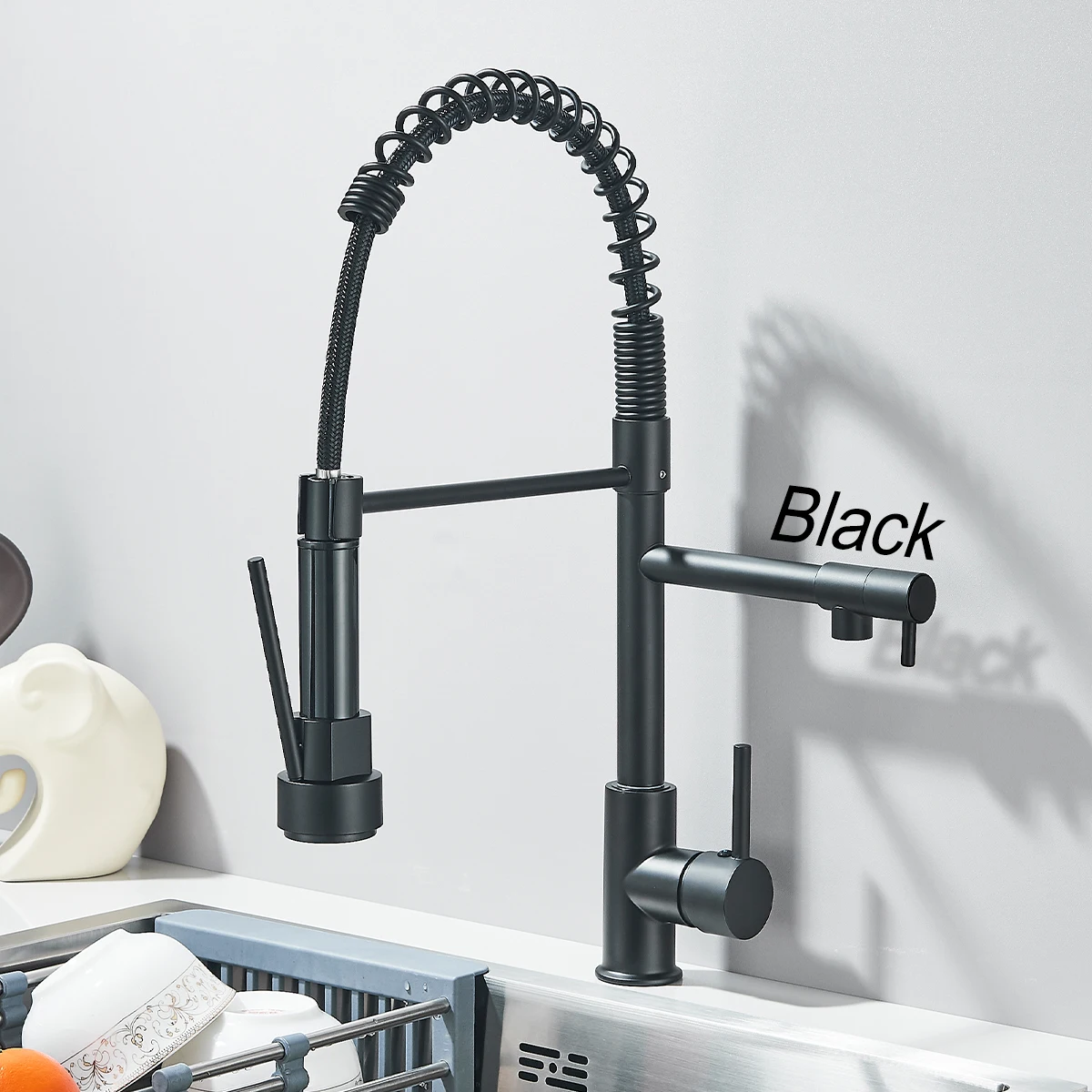 Black Pull Down Kitchen Faucet Dual Spout 360° Rotation Hot Cold Water Mixer Tap Single Handle Deck Mounted Kitchen Sink Crane