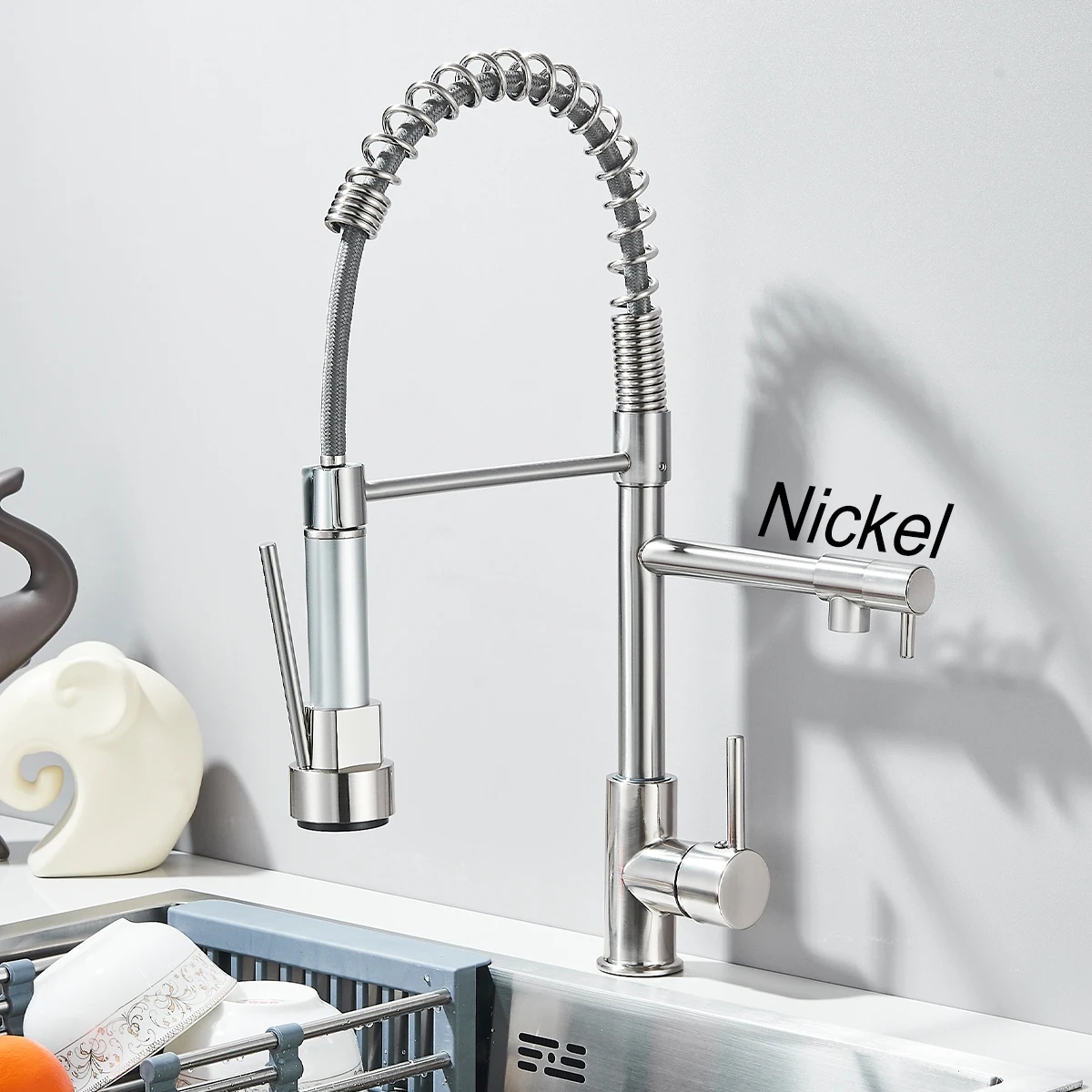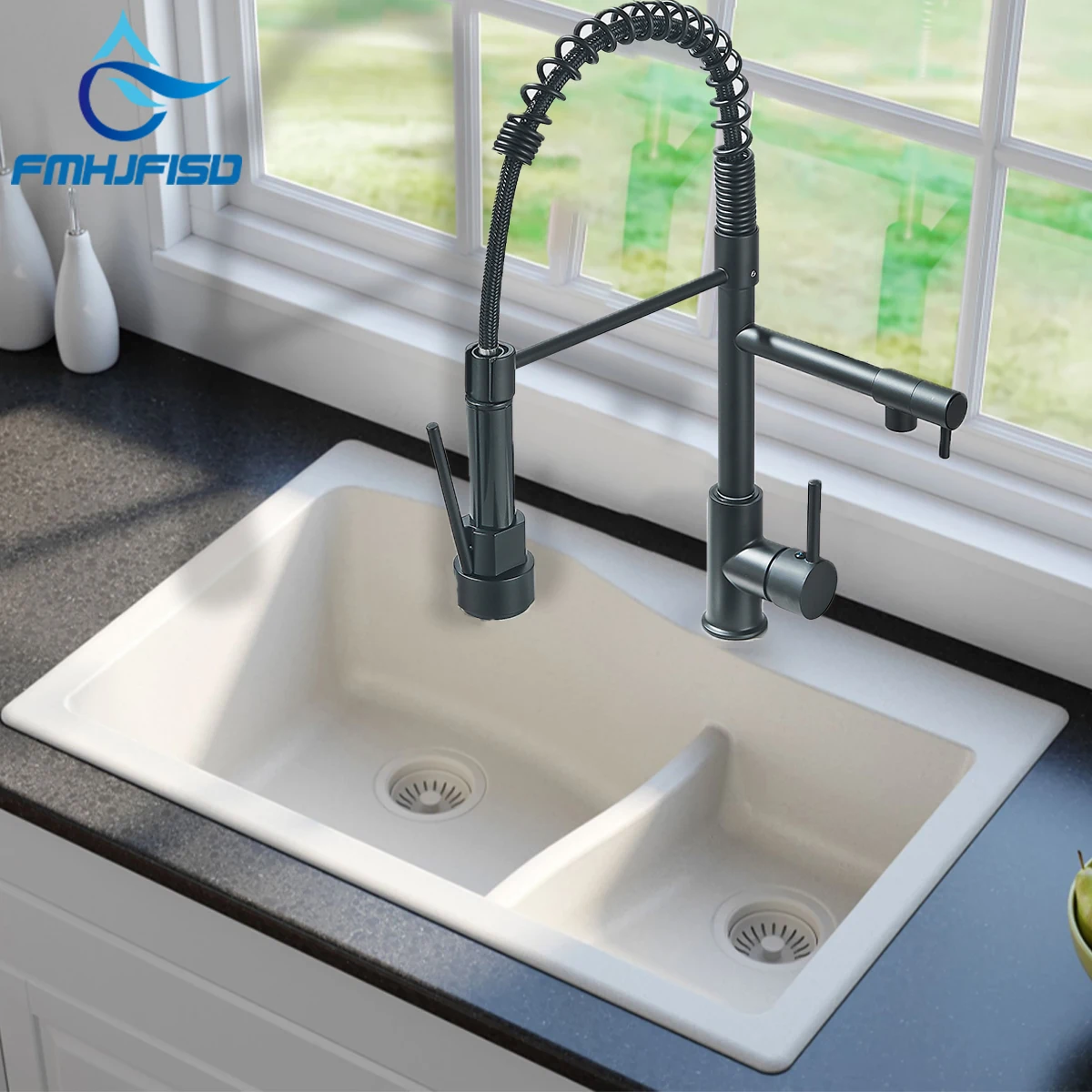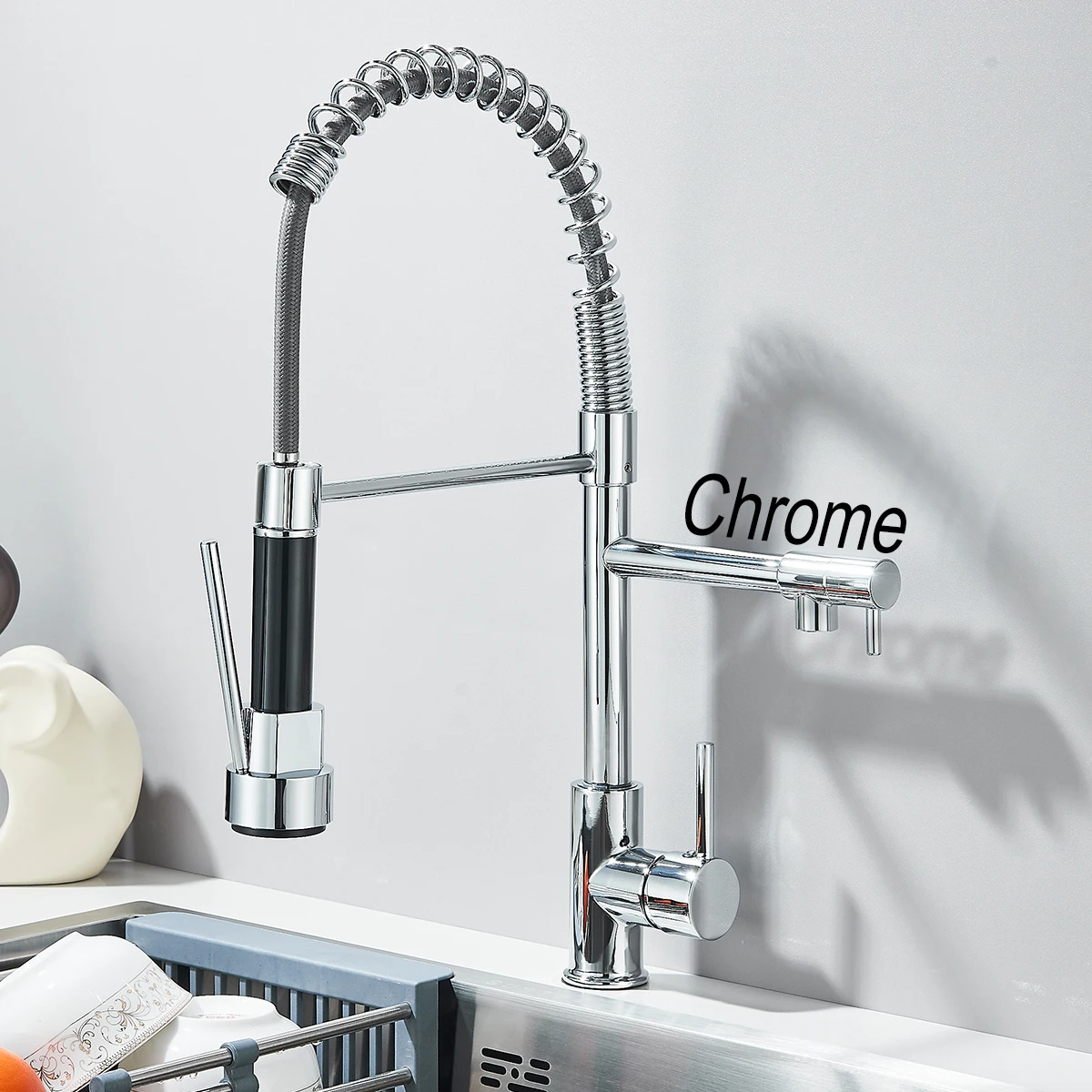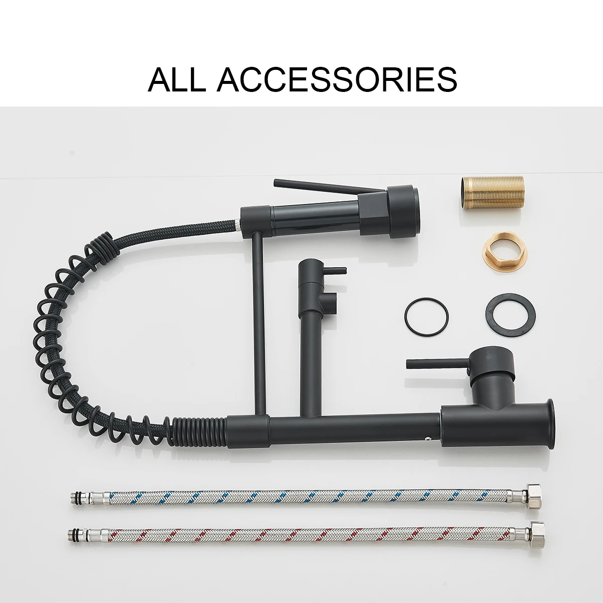 Black Pull Down Kitchen Faucet Dual Spout 360° Rotation Hot Cold Water Mixer Tap Single Handle Deck Mounted Kitchen Sink Crane