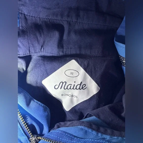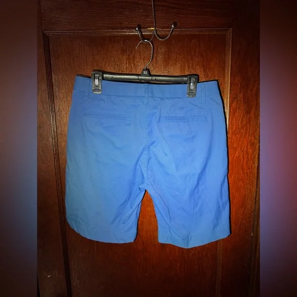 Designed for comfort and performance, these size 32 shorts feature a sleek blue color with a lightweight, breathable fabric perfect for warm weather. They have a button and zip closure, belt loops, and pockets for functionality. The subtle “M” logo embroidery adds a touch of detail.Condition: Gently used, in great shape.Perfect for golf, casual outings, or everyday wear. Let me know if you have any questions!