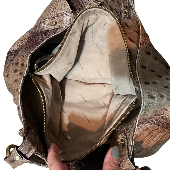 Brahim Anne Mocha Melbourne Leather Roomy Tote w/ Three Interior Pockets Measurements:13 x 14 x 5 1/2 Excellent condition: no rips, tears, bad smells, stains, or pulls.Pet free/smoke-free home.Your paid item will be shipped the next day (minus holidays and weekends). A bit about me: I have been reselling since 1995 and am one of the original eBayers. Finding quality, well-loved items to resell and save from the textile mines is rewarding.Re-commerce is something I do and sell, and I also live that way. I'm downsizing and repurposing as much as possible in my new home! You never have to guess when you buy something from us.We work hard to bring you quality and hope to create a repeat customer experience.New items are added daily!