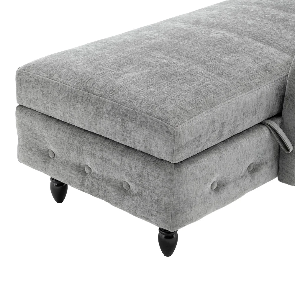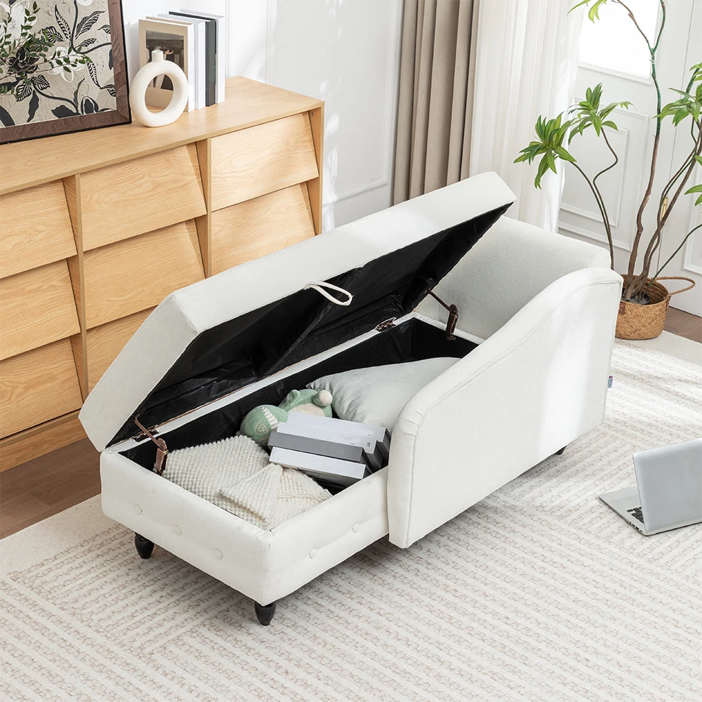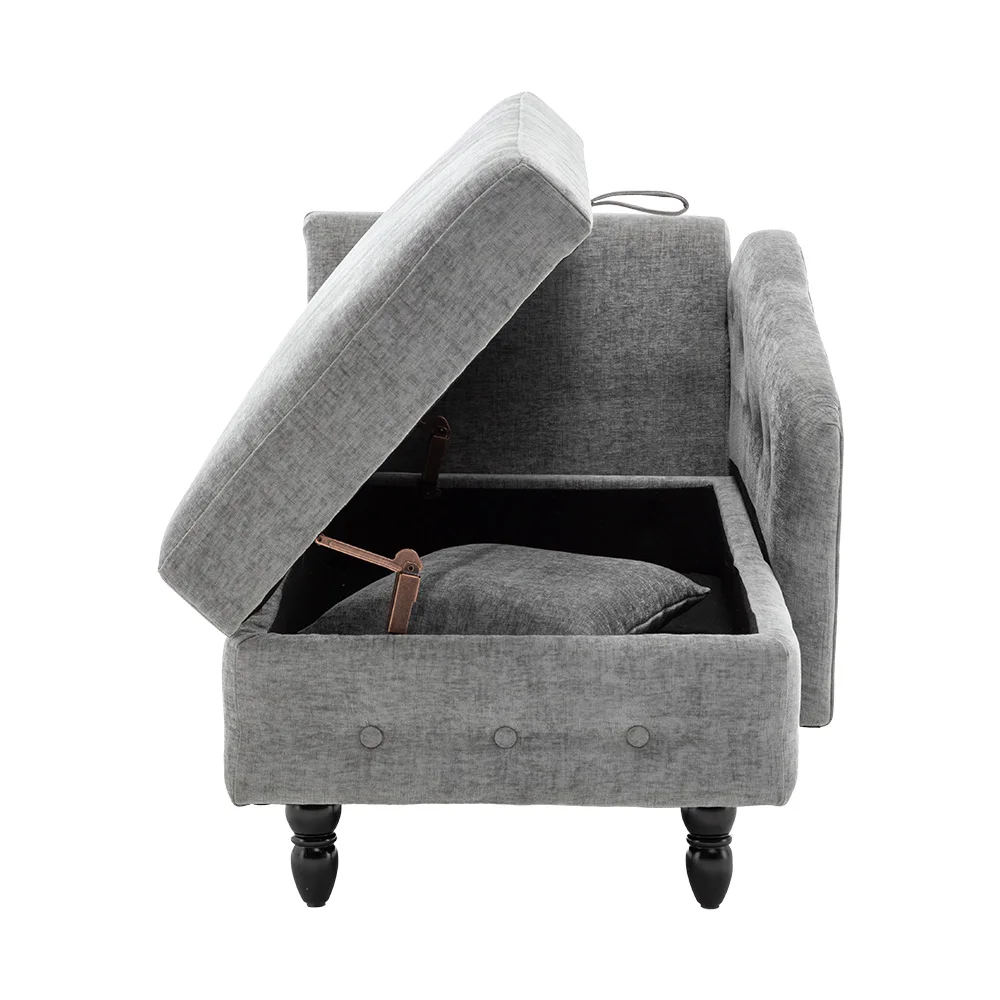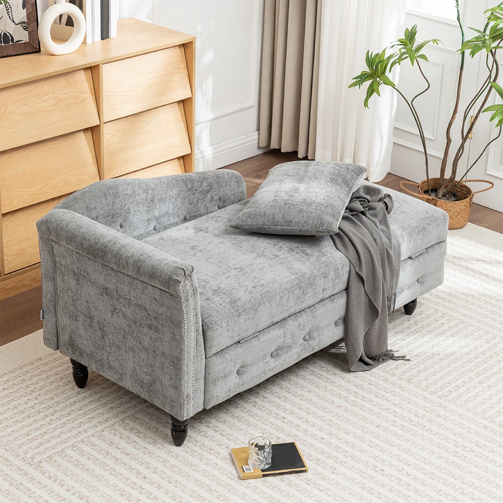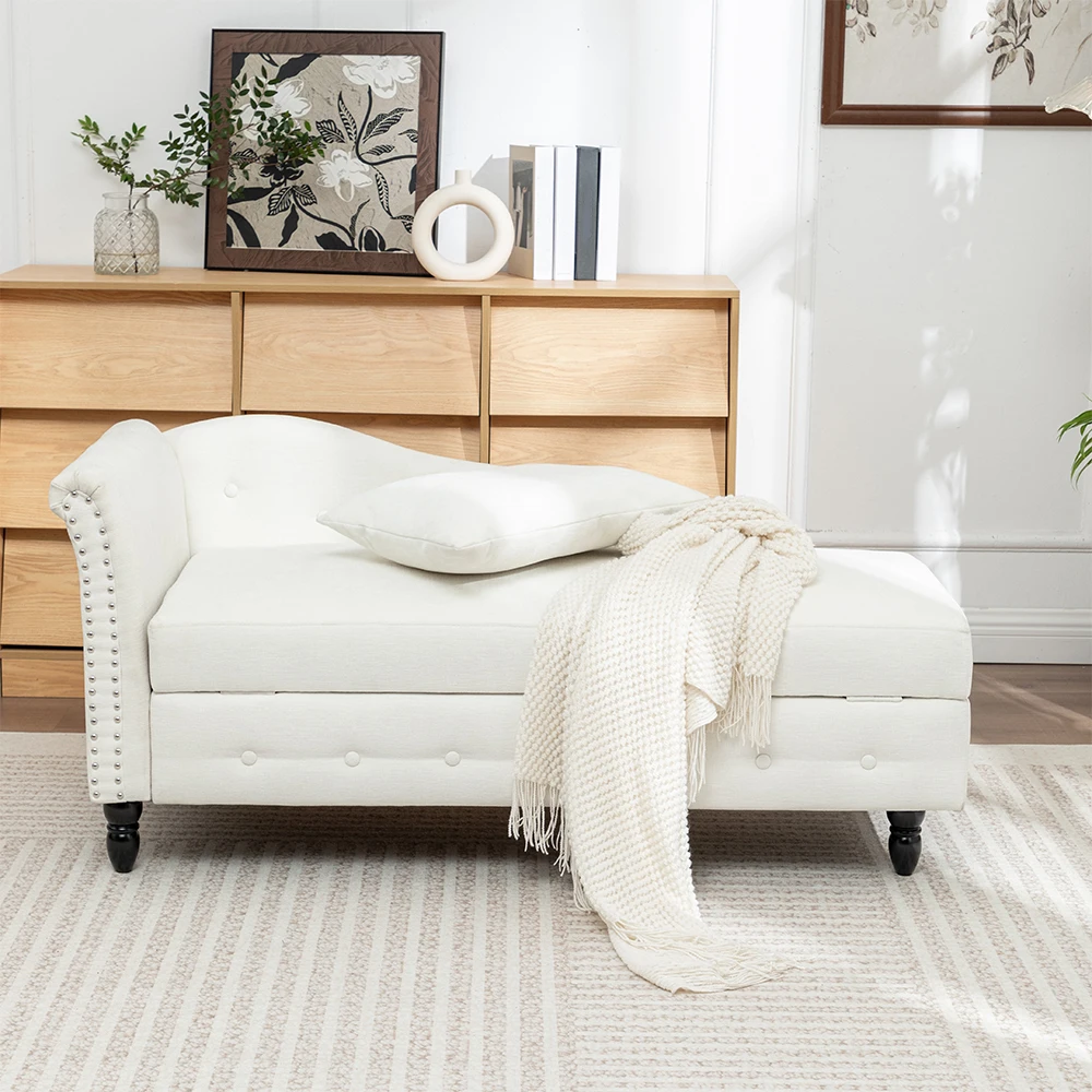 Lean back and unwind—your ideal lounge spot starts here. Upholstered in soft chenille and filled with high-resilience sponges, this chaise lounge offers lasting comfort and support. It exudes luxury and elegance with its rolled armrests and elegantly sloped back for a relaxed yet refined look. A matching pillow enhances relaxation by supporting your lumbar, while a flip-top compartment keeps essentials like magazines and blankets neatly stored. Built on a sturdy frame for durability and stability, this elegant piece blends style and function—perfect for any modern living space.
