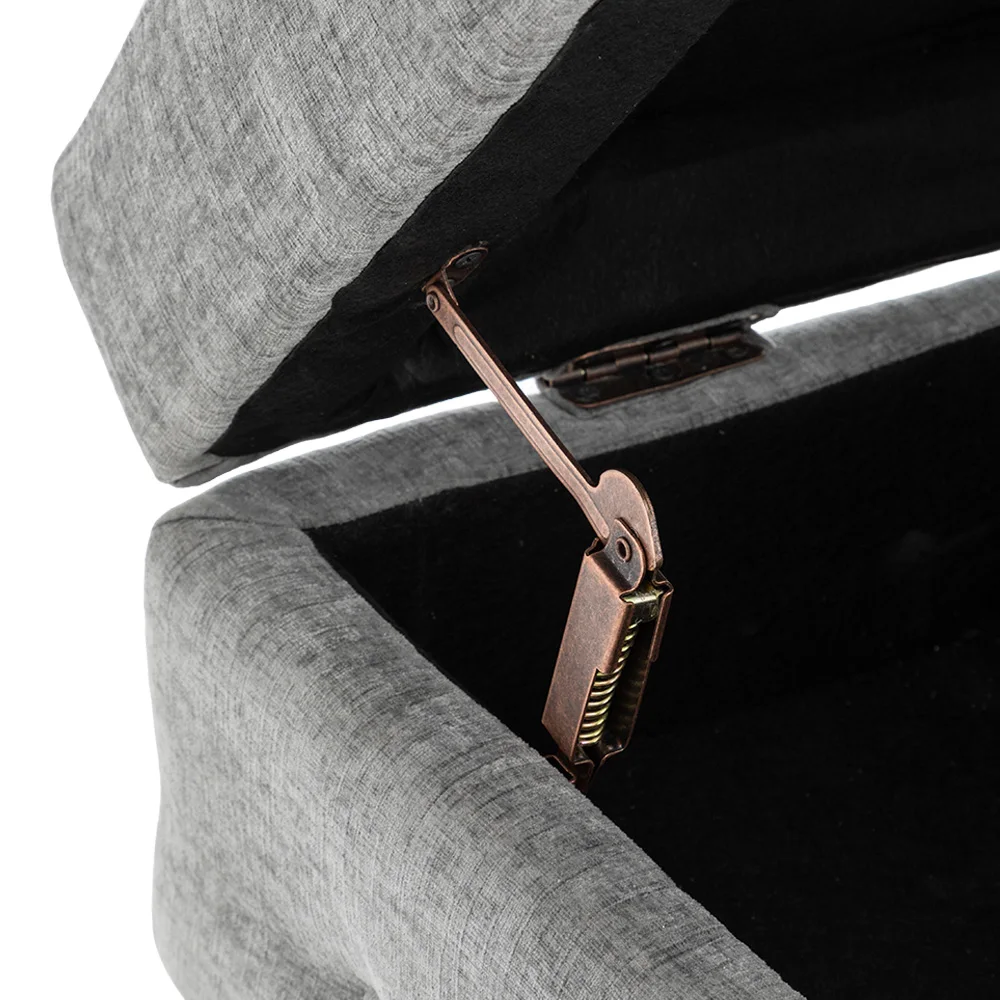 [Sturdy Hinges] Durable metal hinges keep the seat open for easy access to storage.