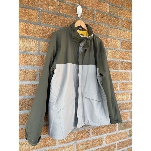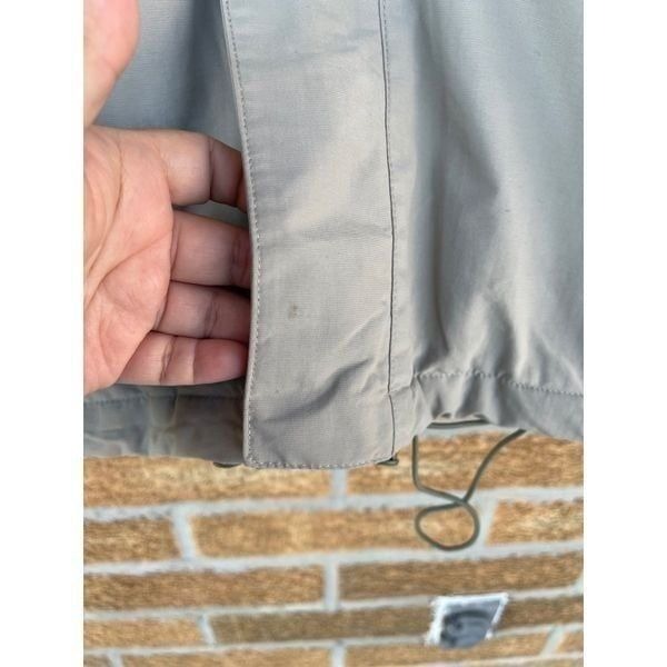 Light weight colors are olive green/ gray in good condition. No hooded, the string in the back I have no idea what’s there for ,