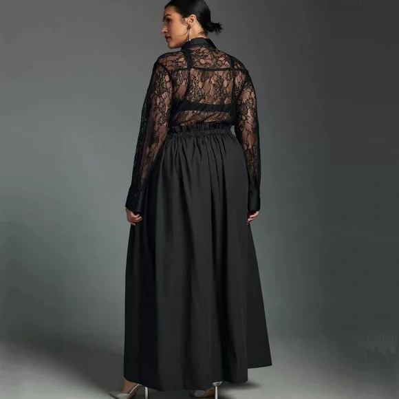By Anthropologie Poplin Maxi SkirtSize 2X A romantic pick for all your seasonal layering, its timeless and classy silhouette makes an elegant statement - pair it with a lace blouse and heels for an edgy, runway-worthy ensemble. NWT. CottonSide pockets Pull-on stylingMachine washMade in Turkey Dimensions 41.5"L